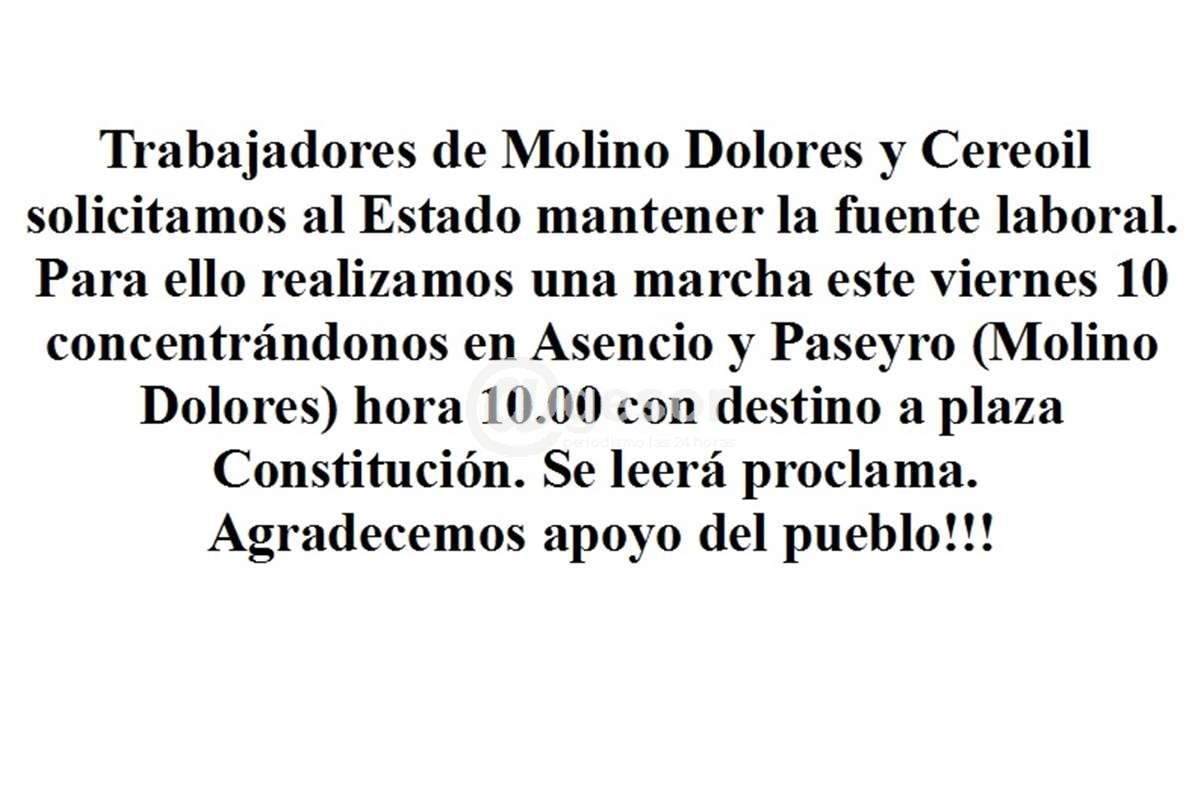 Trabajadores de Molino Dolores y Cereoil solicitamos al Estado mantener la fuente laboral.