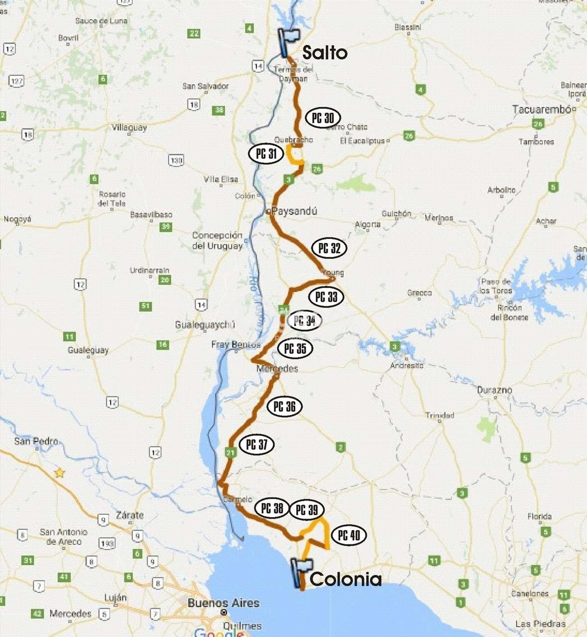 Esta competencia se desarrollará desde el 19 al 25 de febrero del corriente, y se compondrá de 5 etapas. Los automóviles partirán del Aeropuerto de Carrasco en Montevideo tomando rumbo al Este del país para llegar a Rocha y completar 306 kilómetros. La segunda etapa tendrá un recorrido entre La Paloma y Melo con un total de 480 kilómetros. La tercera etapa será de 650 kilómetros entre Melo y Salto. La cuarta etapa saldrá de Salto para llegar a Colonia, completando 560kilómetros y pasando por nuestro departamento. La quinta y última etapa será entre Colonia y Atlántida previo pasaje por el centro delpaís (Trinidad, Durazno, Florida), completando un recorrido de 514 kilómetros.