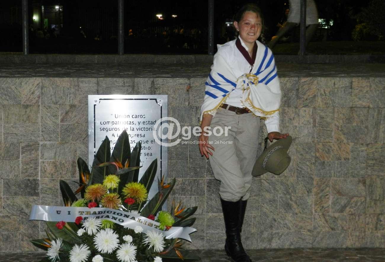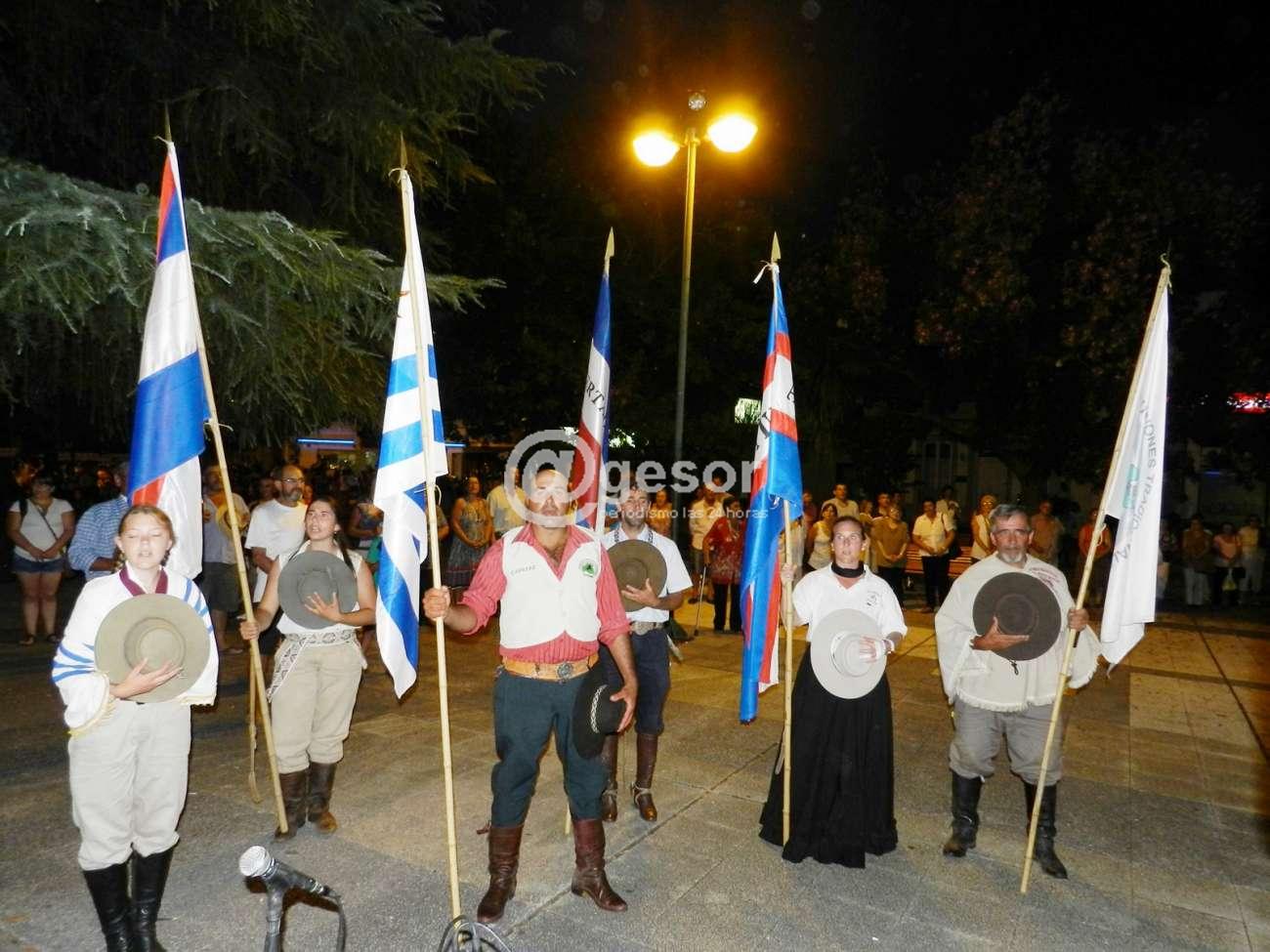 En la plaza se procedió a colocar una ofrenda floral al pie del monumento al Gaucho, que estuvo a cargo de la niña Dahiana Gutiérrez y se entonaron estrofas del Himno Nacional uruguayo, culminando la actividad con la desconcentración de los marcheros.