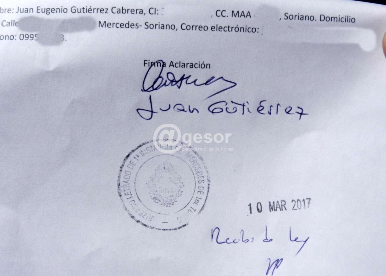 A las 12.20 horas de este viernes, el ciudadano, dirigente político del Partido Colorado, de su sector Evolución 1522, de Mercedes, Soriano, presentó denuncia ante el Juzgado Letrado de Primera Instancia, de Primer Turno, en lo Penal. En la presentación solicita que la Justicia se expida sobre la legalidad de la partida mensual que perciben los ediles y a la vez que la Corte Electoral les pida la renuncia y que devuelvan el dinero que cobraron desde que asumieron y convoque a los suplentes.