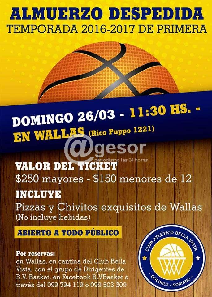 Con un almuerzo abierto a todo público, Bella Vista de Dolores despide este domingo la temporada 2016/2017 de mayores de la Liga Regional de Básquetbol de Soriano.