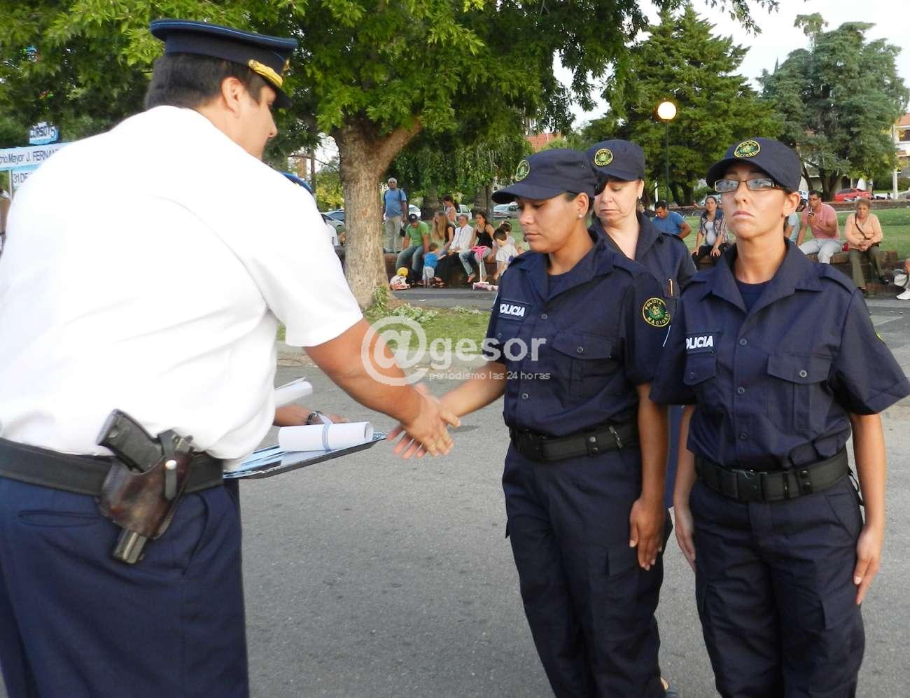Dejamos para el final a Marcela Santos que fue la última en recibir el diploma, lo hizo de manos del Sub Crio. Rafael Arias, actual Encargado de la Seccional 1a, quien a diferencia de lo que habitualmente ocurre con las demás mujeres, se le estrecha la mano, aquí además la saludó con un beso, ¿la razón? es que es la esposa del Sub Crio. Arias y por ello ilustramos esta nota con la foto del saludo de Arias a su esposa la novel agente Santos (en la primera foto, en la segunda es la agente María Rodríguez quien es saludada por Arias).