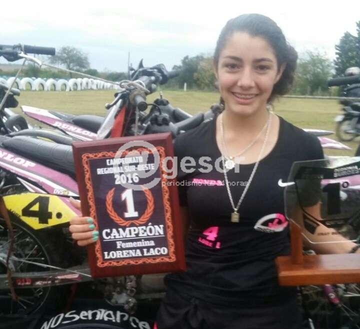 Este domingo se corrió en Fray Bentos, en la pista La Tablada (Amoti), la 3era fecha del Campeonato Regional Sur-Oeste de motociclismo, velocidad en tierra. Lorena Laco, campeona 2016, ganó las dos series de su categoría y quedó primera. Al mismo tiempo se llevó adelante la ceremonia de entrega de premios a los ganadores de la temporada 2016. Allí la joven competidora sorianese recibió la distinción correspondiente a su categoría.