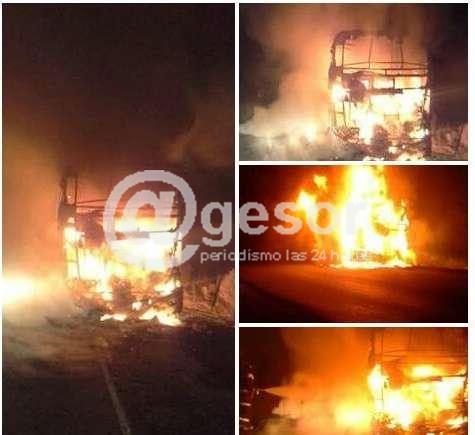 Un ómnibus de la empresa Intertur que partió de la ciudad de Dolores fue consumido por completo por las llamas tras tomar fuego el motor, por causas que se desconocen.
