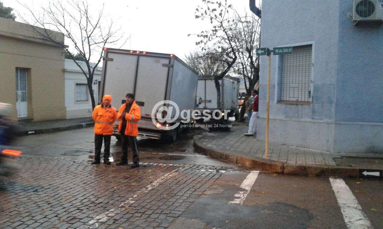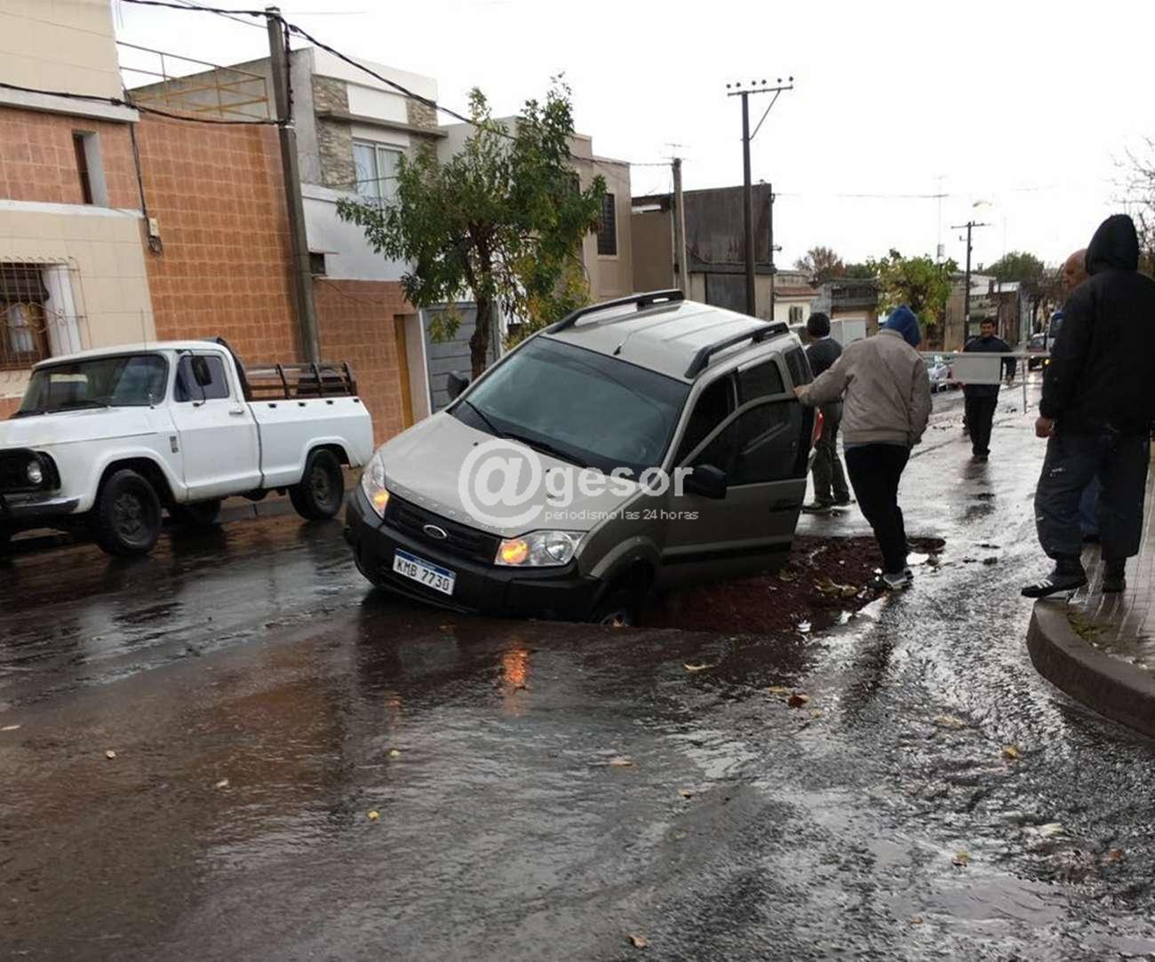 En la mañana de este viernes ocurrieron algunas situaciones en que vehículos que circulaban por calles de Mercedes en las que se habían realizado intervenciones por parte de empresas contratadas por OSE para realizar tareas de recambio de llaves en la red de agua potable, y que los pozos habían sido tapados transitoriamente con granza y no debidamente señalizados, y con las intennsas lluvias se "lavaron" dejando al descubierto los pozos que ocasionaron el hundimiento de ruedas de al menos un par de vehículos que debieron ser auxiliados para salir de allí.