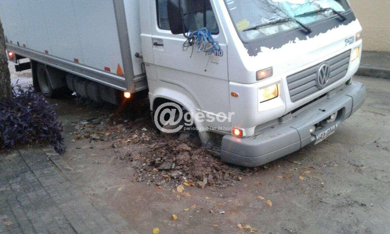 En las fotografía se aprecia un camión con una rueda enterrada a la altura de pozo ubicado en Ansina casi 18 de Julio y una camioneta en Blanes Viale casi Oribe.