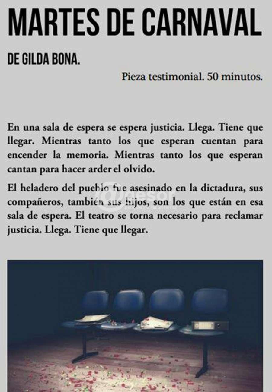“Martes de Carnaval” la obra teatral que será puesta en escena se basa en la detención y asesinato de Aldo “Chiquito” Perrini, y “es nuestro tributo a Zelmar, a Perrini, y a quienes siguen creyendo que la verdadera lucha del ser humano, debe ser en defensa de sus ideales”, expresan los organizadores en un comunicado promocionando la actividad.