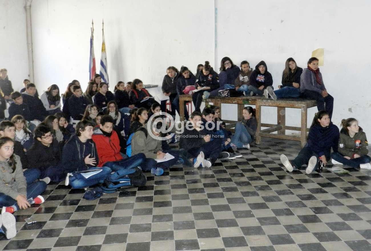 En el salón "Mansilla" del Liceo 2 "Luis A. Zanzi" de Mercedes se desarrollaron en la mañana de este martes, charlas a alumnos de primer año por parte de personas privadas de la libertad que llevan adelante por un lado el programa de compostaje y por el otro la producción del producto EM de microorganismos.