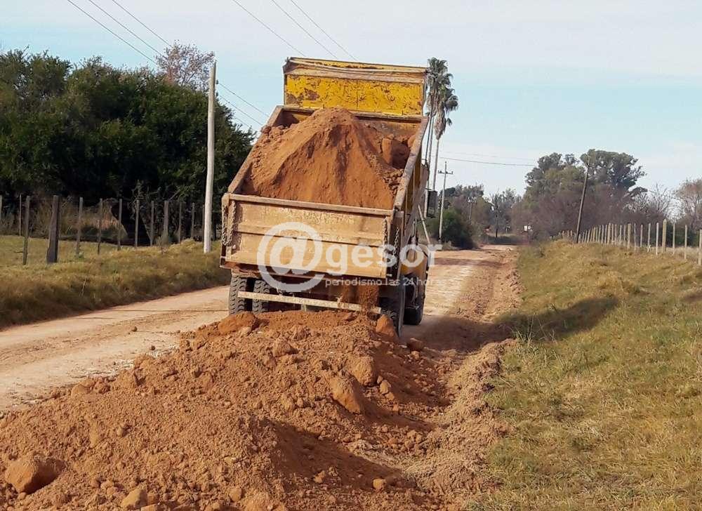 El Municipio de Dolores continúa llevando adelante trabajos en caminos vecinales de su área de influencia, realizando tareas de mantenimiento y recarga con material granular.