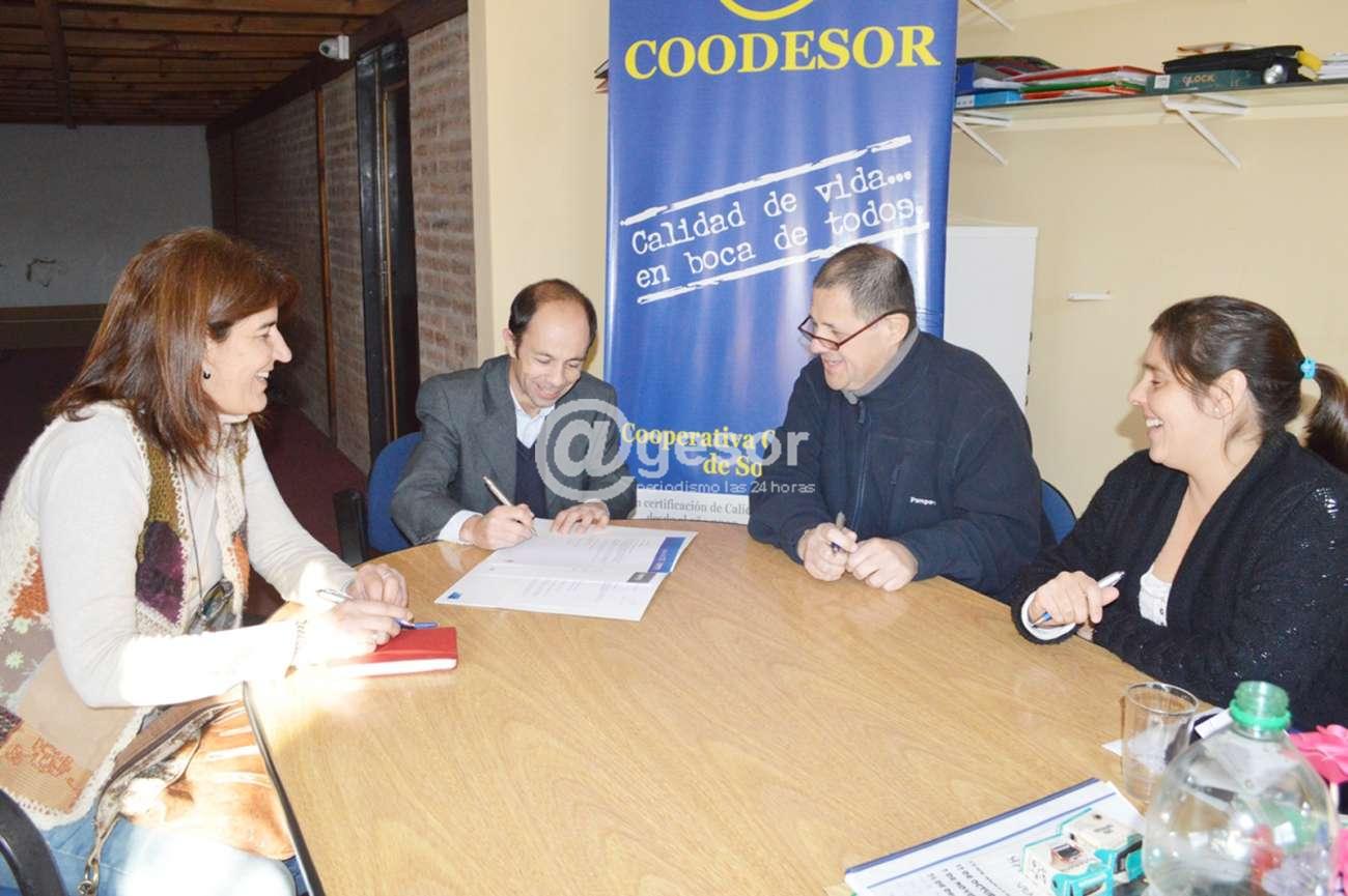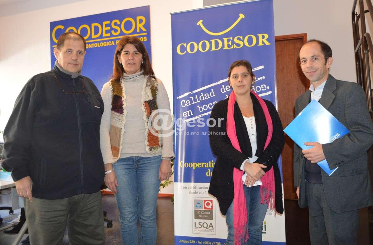 La Cooperativa Odontológica de Soriano firma acuerdo con Creditel, como parte de una alianza estratégica, instancia de la que participaron por COODESOR Dr. Marcelo Elutchanz presidente, Dra Yadiyi Crosi secretaria, Dra Victoria Moll tesorera, y por CREDITEL Gabriel González Lescano gerente sucursal Mercedes (de izquierda a derecha en la fotografía principal).