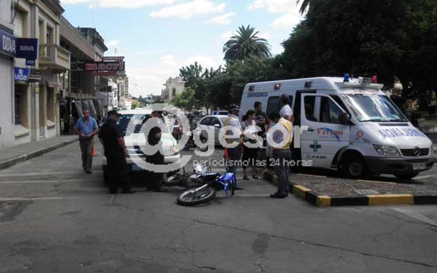Una camioneta perteneciente a la Intendencia de Soriano y una moto chocaron a la altura de Colón y Careaga, cuando ambos vehículos se dirigían en el mismo sentido, haciéndolo de norte a sur.