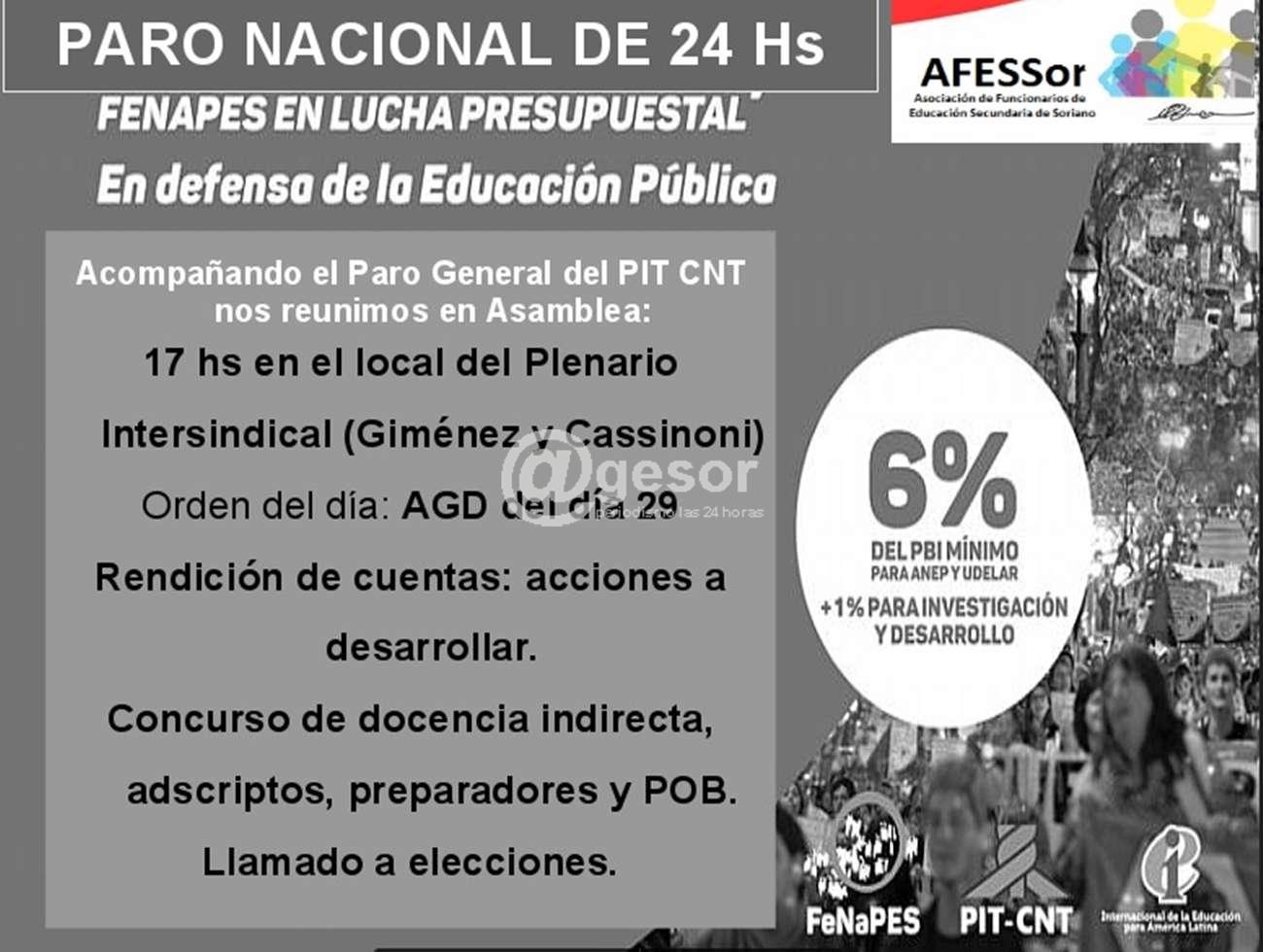FENAPES en lucha presupuestal: 6% del PBI mínimo para ANEP y UDELAR + 1% para investigación y desarrollo