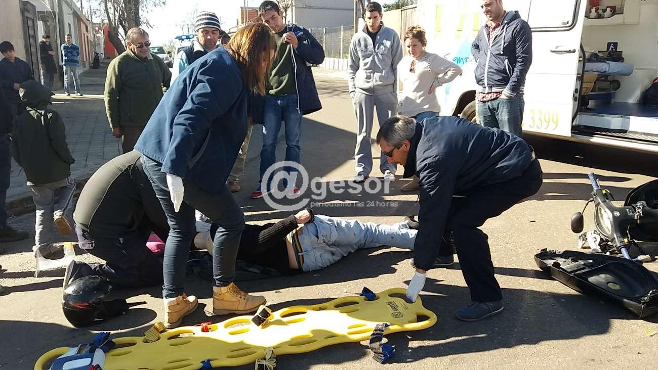 Como resultado de la colisión, el motociclista resultó lesionado, tratándose de Gustavo Nicolás Parao Otte de 20 años, quien fue trasladado a Sanatorio de CAMS para mejor atención, se encontraba conciente, el mayor impacto lo llevó en la zona de los pies y las piernas. El joven estaba cumpliendo tareas como delivery de Círculo Policial inclusive en el momento llevaba uno de los pedidos.