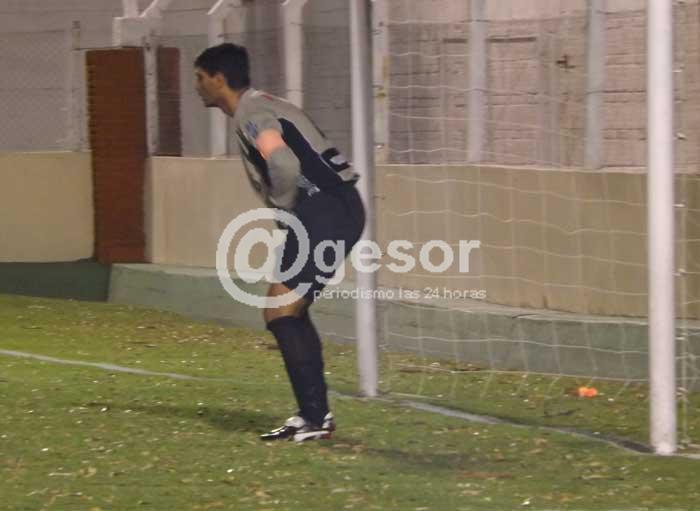 Foto: Enrique Moreira, fotografiado por @gesor en el Primer Tiempo del clásico disputado en el Estadio Liebig' s, cuando sus intervenciones acallaron más de un grito de gol de los pocos hinchas de Fray Bentos.