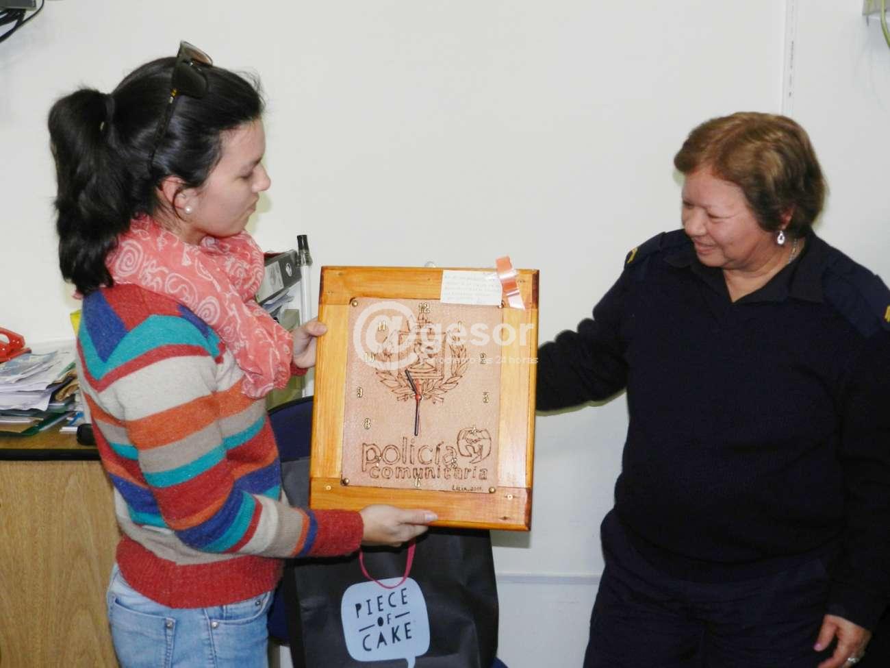Este sábado al mediodía, sus compañeros de Policía Comunitaria, cada uno llevó algo y compartieron una pequeña despedida y brindis, oportunidad en la que Lilia dejó como obsequio que entregó a la Oficial Valentina Sosa encargada de la Unidad, un reloj en cuero tapujado hecho por ella en los cursos que mencionamos y con él una tarjetita diciendo "No es una despedida, me verán a la venta de la esquina, y a cada segundo. Un apretado abrazo. Con cariños. Lilia".