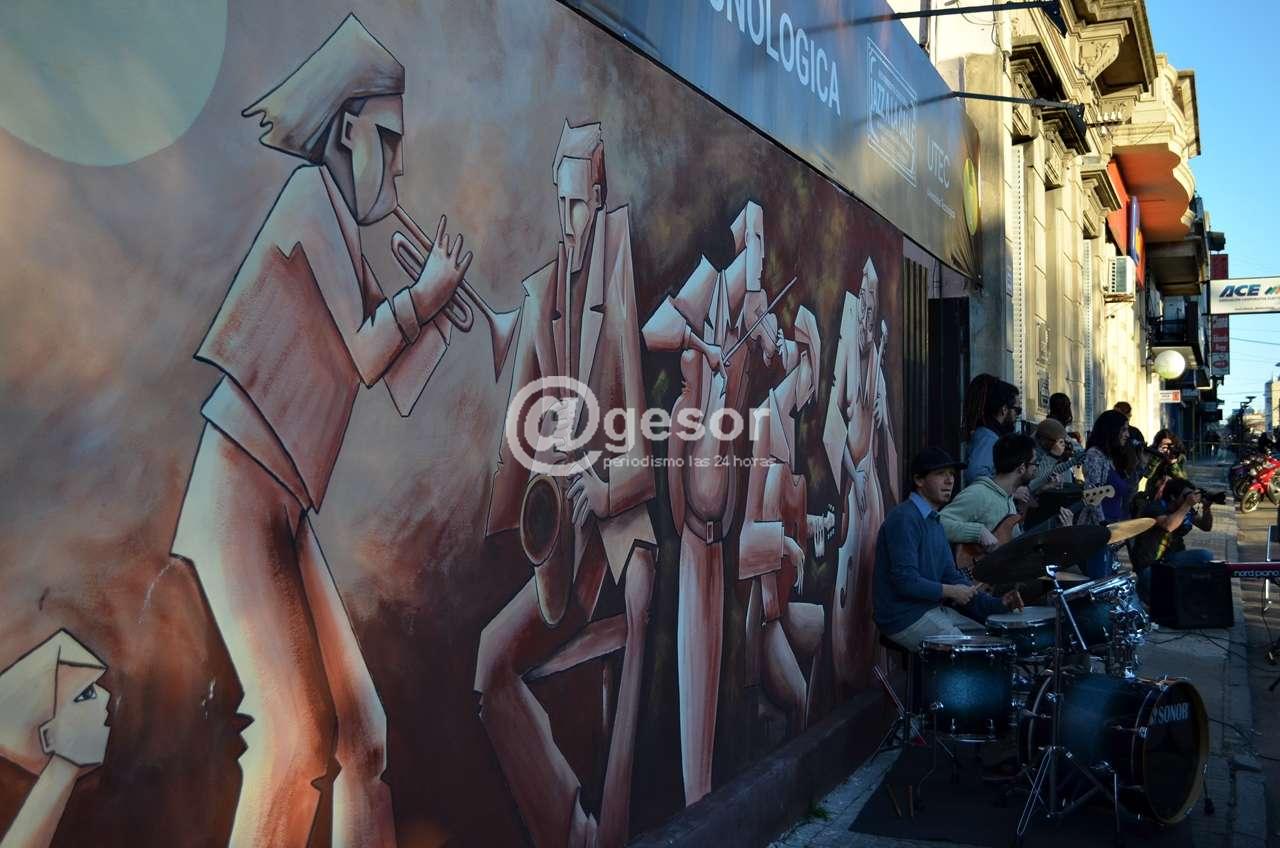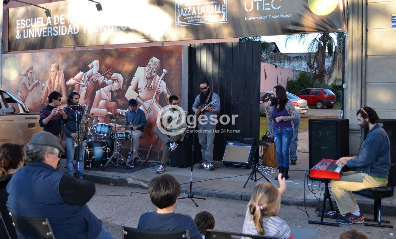 El movimiento Jazz a la calle organizó este toque callejero en la tarde de este miércoles, en la acera de la UTEC en el centro mercedario. Una postal de la ciudad que ya estamos habituados a verla en el verano cuando se realiza el encuentro internacional de músicos Jazz a la calle, pero desacostumbrada para el mes de agosto. Profesores de la UTEC y de la Escuela de Música participaron de este toque callejero que congregó a un interesante grupo de personas, muchas de ellas que ocasionalmente pasaban por el lugar y disfrutaron de este espectáculo.