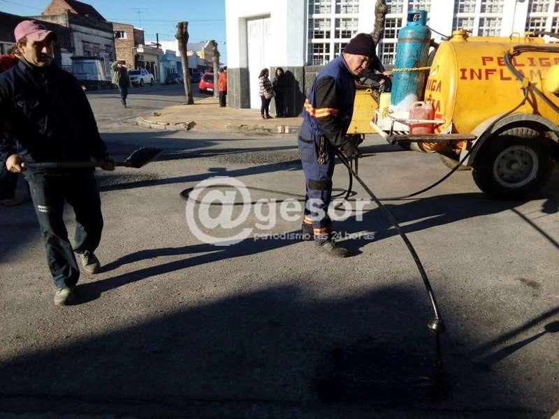Por ejemplo en distintas calles se continúa con el bacheo utilizando diluidos asfálticos en caliente, con aplicación de gravilla, tareas que se desarrollan en los distintos barrios.
