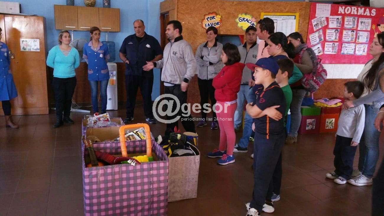 Niños pertenecientes a los planteles de Baby Fútbol de Bristol, donaron juguetes, a integrantes del Club del Niño Túnel, en la tarde de este viernes adelantando la celebración del día del niño.