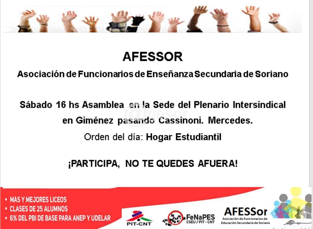 Sábado 16 hs Asamblea en la Sede del Plenario Intersindical en Giménez pasando Cassinoni. Mercedes.