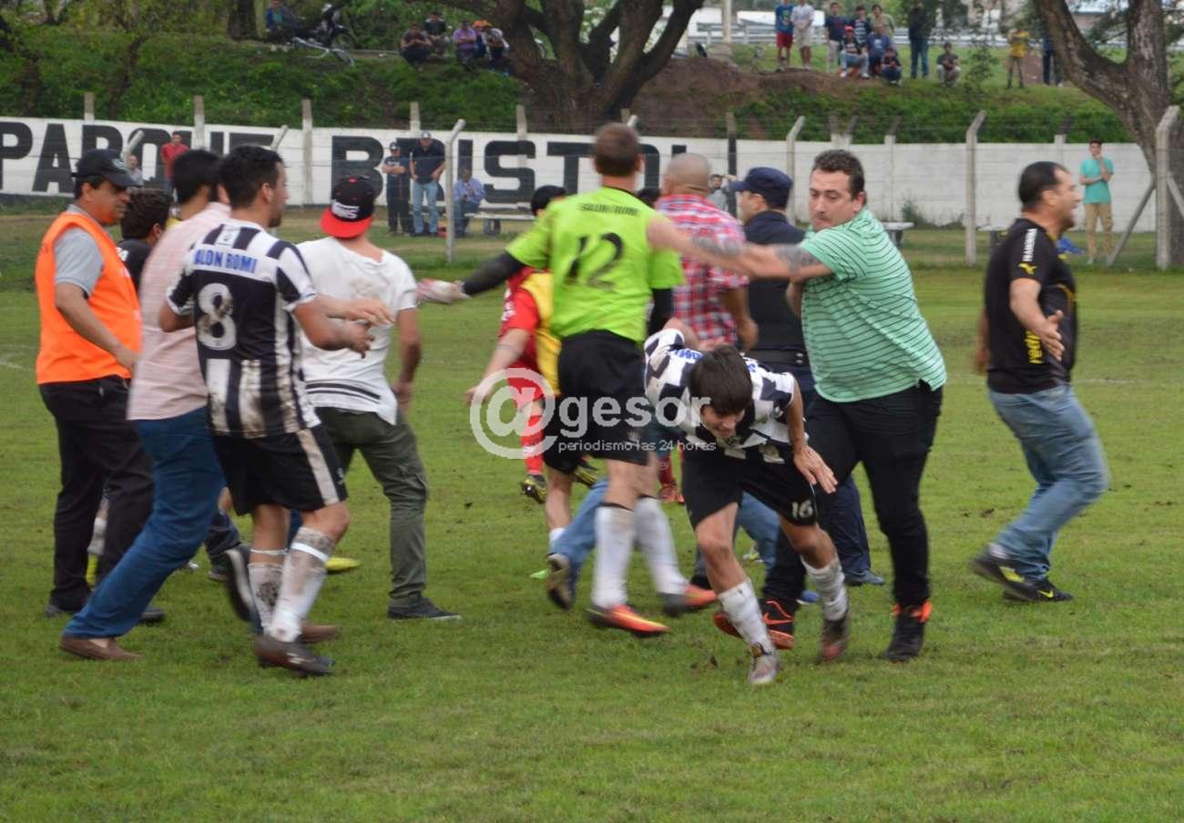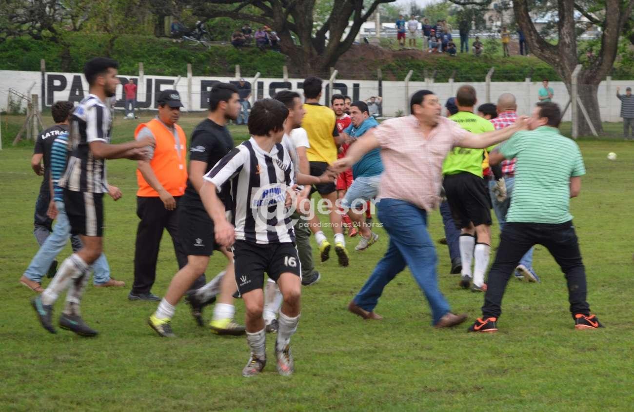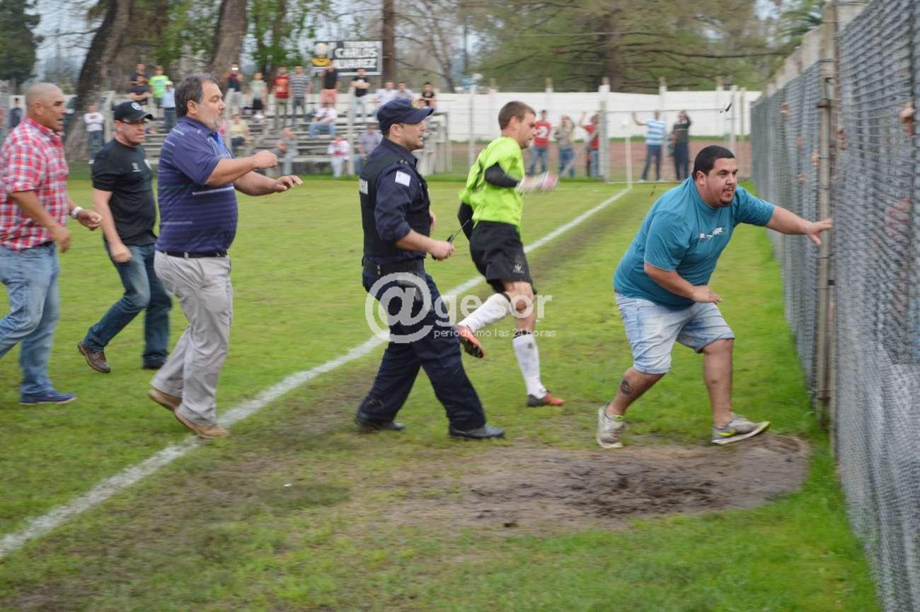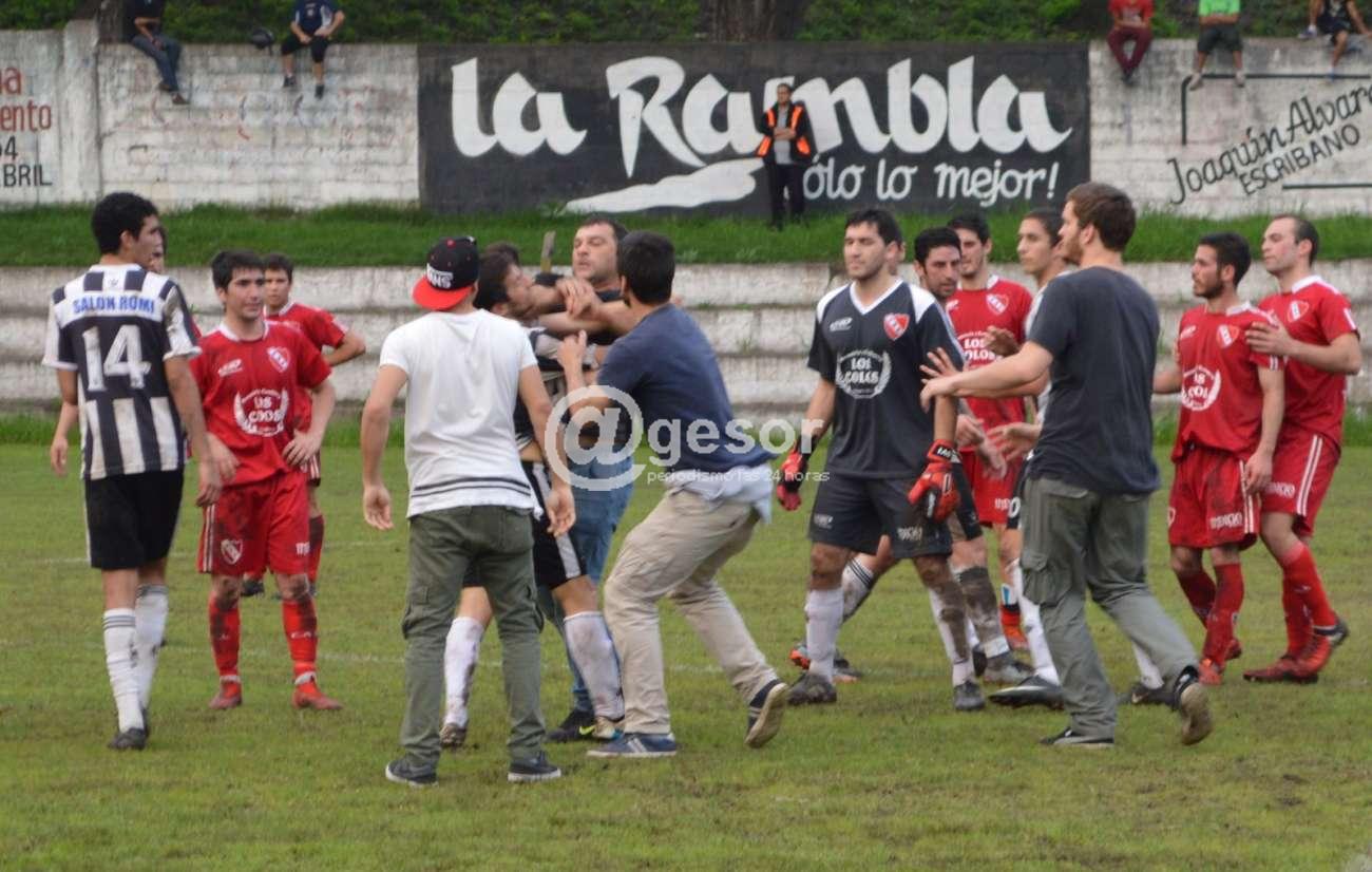 El encuentro fue suspendido a los 90' cuando quedan 4' de tiempo adicional, ahora será el Tribunal de Penas el que entenderá en las denuncias y si como dicen los dos delegados de los equipos al propio árbitro que presentarán la filmación que de acuerdo a lo que nos dijo el colega de CV10 Julio Izaguirre tiene de los hechos, allí podrá apreciarse que hay personas de los dos equipos golpeando de manera artera a otras personas. Por eso lo del título, ¡basta de violencia! ¡Sanciones ejemplares!