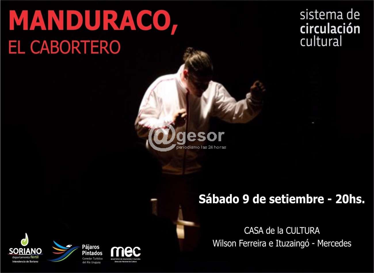 Éste sábado en Casa de la Cultura se presentará la obra “Manduraco, el cabortero” una pieza unipersonal del grupo Imaginateatro de Paysandú. Este espectáculo se enmarca en la serie de actividades del Sistema de circulación cultural del Corredor de los Pájaros Pintados, un iniciativa llevada adelante por el Corredor de los Pájaros Pintados, el Ministerio de Educación y Cultura y la Intendencia de Soriano.