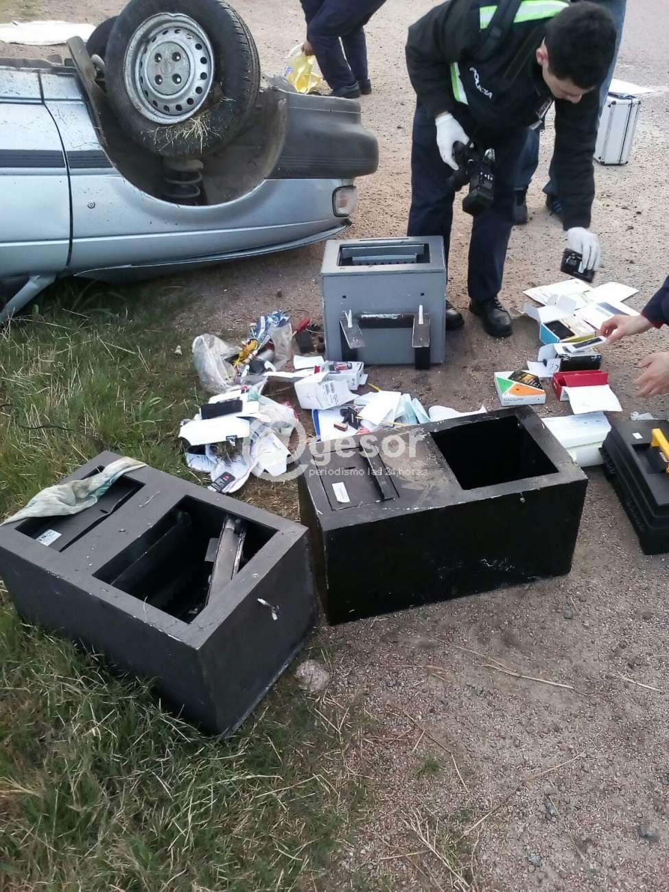 En el lugar, fue ubicada la caja fuerte de uno de los locales, tras el vuelco, un camionero que pasaba por el lugar asistió a uno de los ocupantes del vehiculo, trasladando a la Policlínica de Rodó, quien finalmente resultó fallecido, resultando ser una persona de apariencia joven que está tratando de ser identificada.