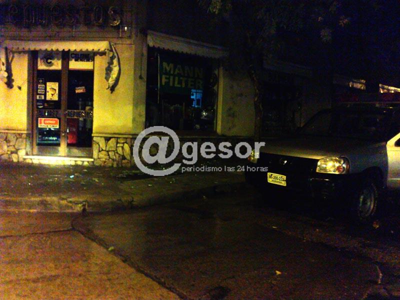 Mientras se desarrollaba el temporal de viento y lluvias, vecinos denunciaron el estallido de vidrios en al zona de Oribe y Rodó, donde se constató la rotura de vidriera del comercio Alvarez Repuestos aguardándose la presencia de su titular para determinar el monto de lo robado y la entidad de los daños. La Policía pudo recuperar varios repuestos que se encoentraban esparcidos en las inmediaciones en virtud que los delincuentes en su huída ante la rápida acción policial dejaron algunas cosas por el camino.
