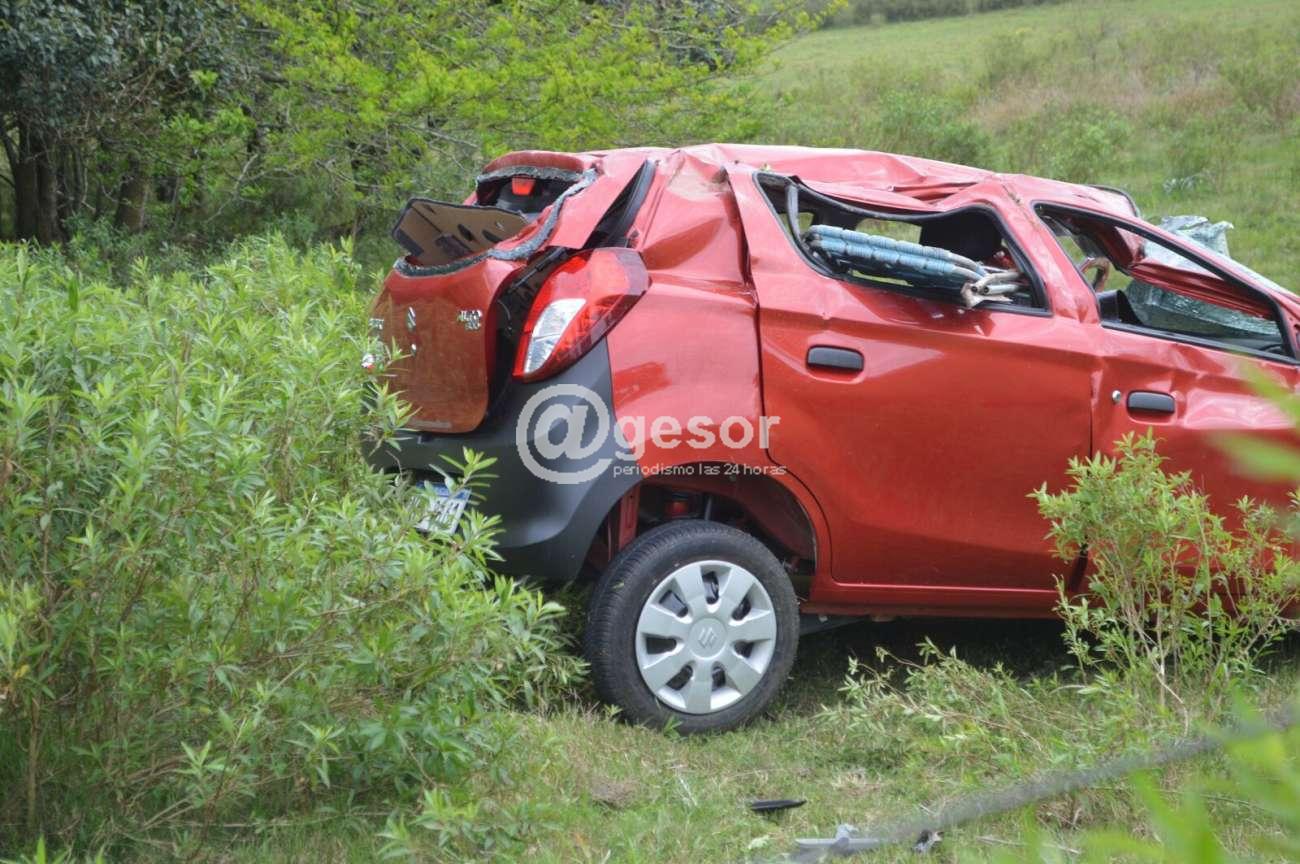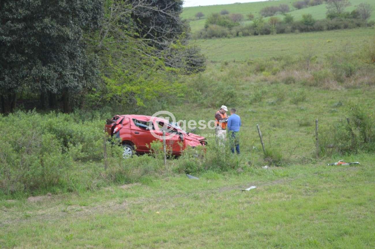 El hecho ocurrió a la altura del km 334 de ruta 21, cuando el vehículo se dirigía de Mercedes a Dolores, saliéndose de la carpeta asfáltica cruzó el descampado, rompió un alambrado y quedó metido dentro de un campo.