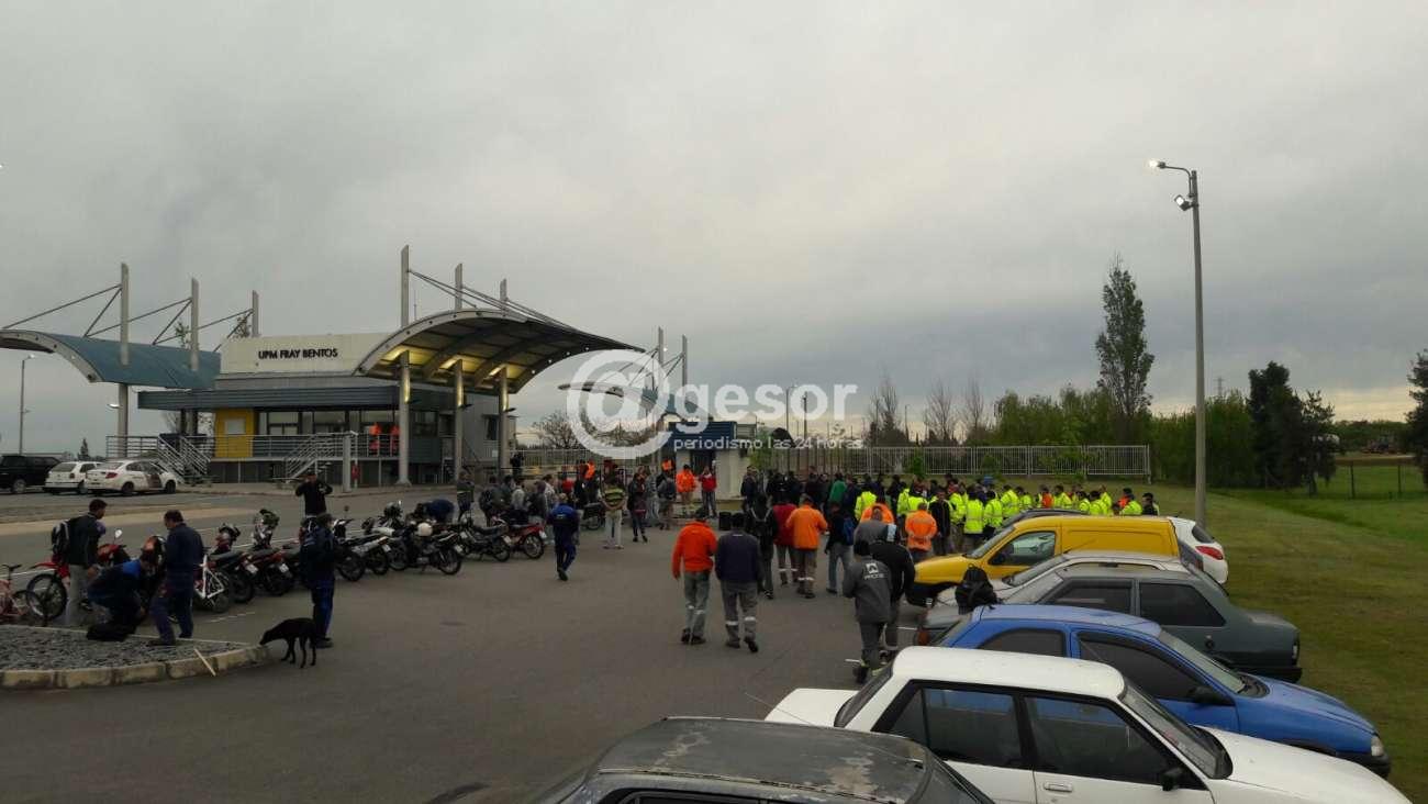 Unos 60 trabajadores de la empresa Oldson S.A. nucleados en el sindicato SOYMA, que cumplen tareas para UPM, se encuentran en conflicto, habiendo paralizado sus tareas desde el jueves en forma permanente estando fuera de la planta industrial a la espera de las negociaciones que continuarán este jueves en la Dinatra.