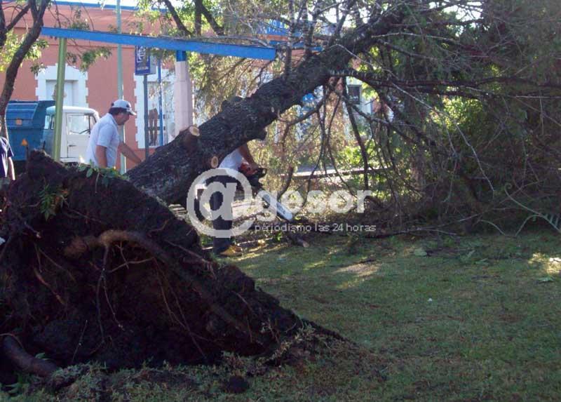 En calles Zapicán y Flores, y en  Rodó y Oribe cayeron al suelo cables del tendido eléctrico En Paraje Perseverano cayeron varias columnaslo que produjo que la localidad se  quedara sin energía eléctrica.