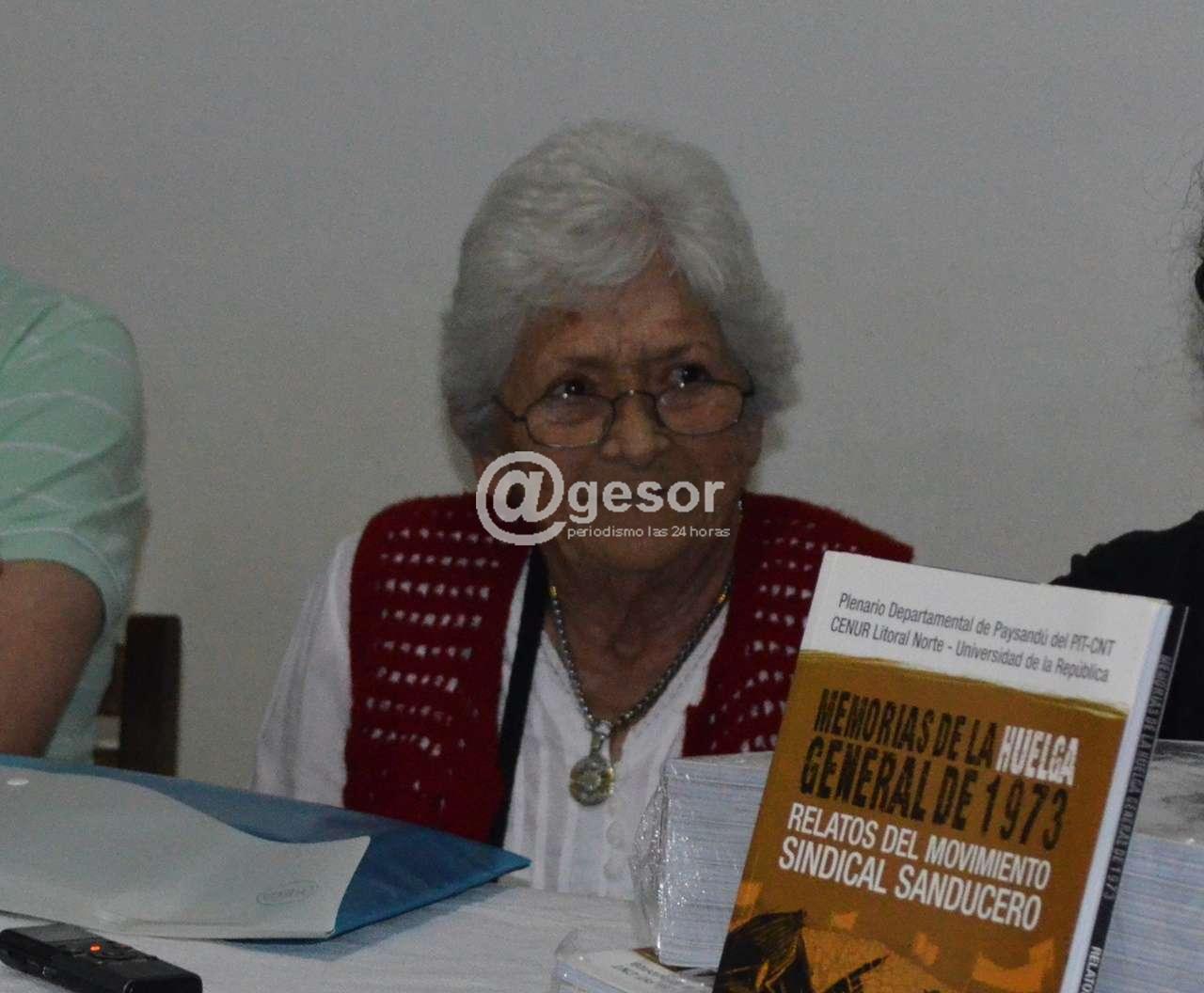 “Se hacían atrocidades en Paysandú”  dijo al  dialogar  con @gesor. “Los plantones  las palizas, las cachiporras. Uno  iba en lo  personal, nosotros un gremio de  mujeres, que  al principio nos  reuníamos  a escondidas, y un día  un compañero dijo,  si siguen haciendo eso  las voy  a denunciar.  Y bueno,  la verdad que  nos dio  mucho  medio.  Entonces  empezamos  a pedirle permiso a  la  Policía. Iba yo a pedir  permiso. Pueblo chico, nos conocemos todos, éramos  vecinos  de un hermano de él,   y el  propio  Comisario  me decía   ‘señora no ande  en esto. Mire  que la  mano viene  brava. Yo  se  por qué  le digo’. El  propio  Comisario, pero nos  ponían  el  policía  dentro  de  la Asamblea.  Fue  muy difícil. Si  hacías  un cumpleaños  tenías que  pedir  permiso, tres que  conversaban  juntos   eran  sospechosos  y llevados. Fue  muy  feo”.