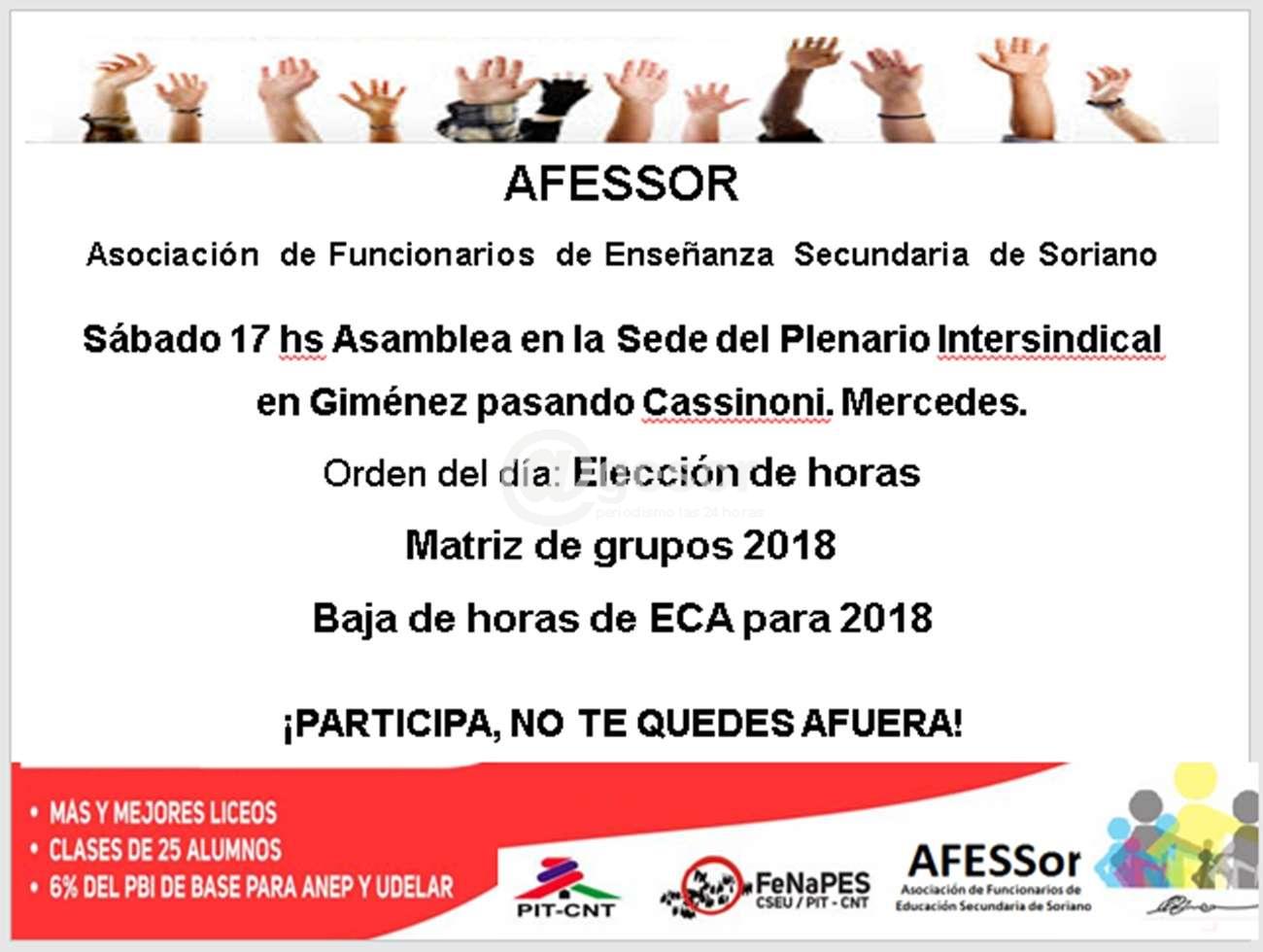 Sábado 17 hs Asamblea en la Sede del Plenario Intersindical en Giménez pasando Cassinoni. Mercedes.