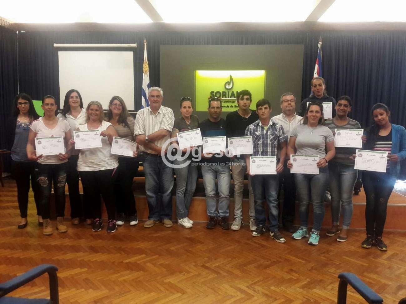 En la oportunidad, el Intendente de Soriano, Agustín Bascou Gil y el Coordinador del programa Jorge Potacek fueron quienes hicieron entrega de los diplomas a los participantes: Nancy Rasquiz, Laura Dahiana Silva, Laura Villaba, Paola Scarone, Oscar Goró, Rosario Scarone, Mónica Morosini, Vanesa Abad, María Inés Martínez, Federico La Paz, Jennifer Cano, Mauricio Rial.
