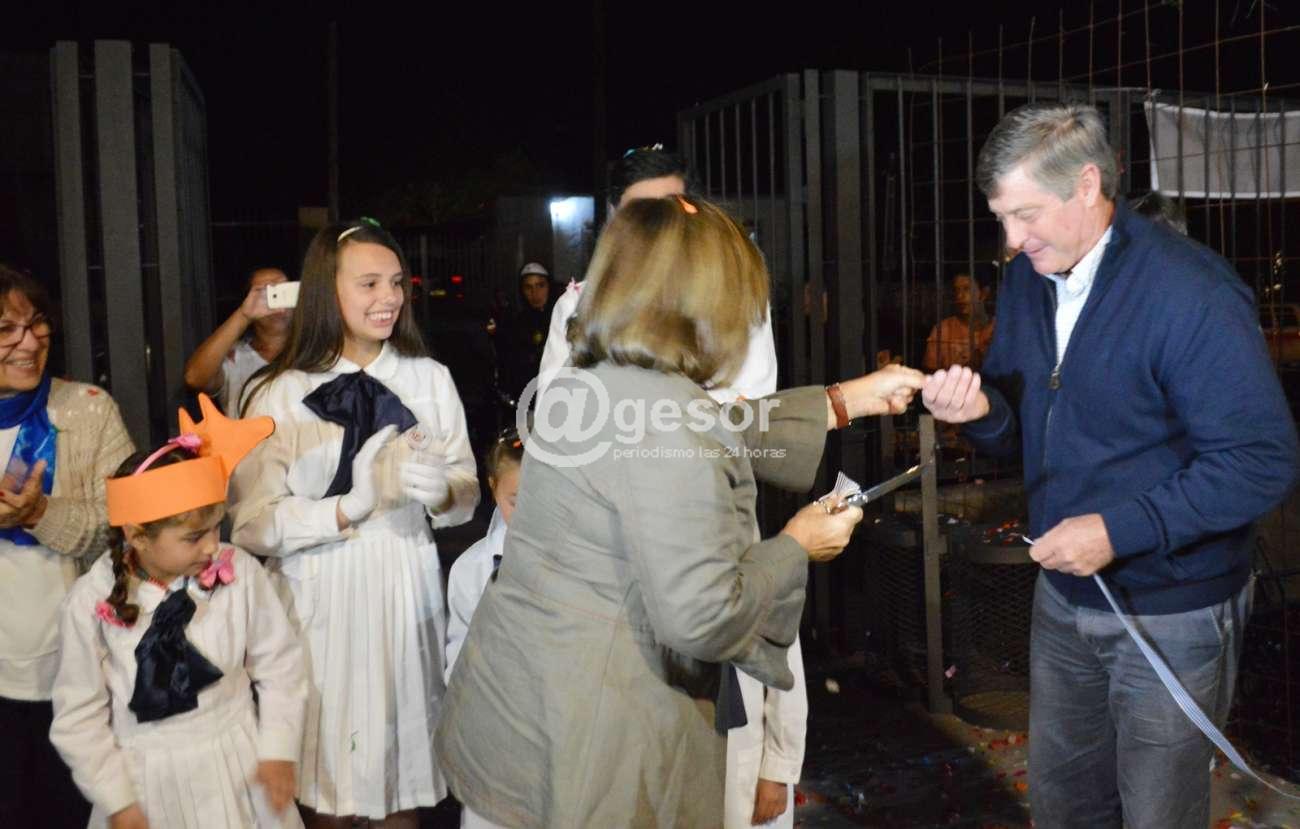 Precisamente, Irupé Buzzetti, junto a la Inspectora Departamental Insp. Raquel Casartelli fueron quienes realizaron el corte de cinta, mientras que Buzzetti junto a la Directora de la Escuela Maestra Roxana Giménez descubrieron la placa.