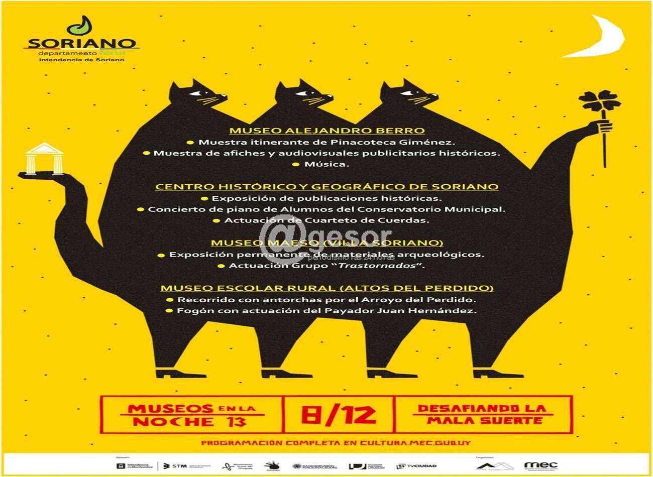 En Soriano se realizarán actividades en la Escuela N° 85, “Altos del Perdido”, en el Museo “Maeso” en Villa Soriano, en el Museo “Alejandro Berro” y la Pinacoteca “Eusebio Giménez” en Mercedes.