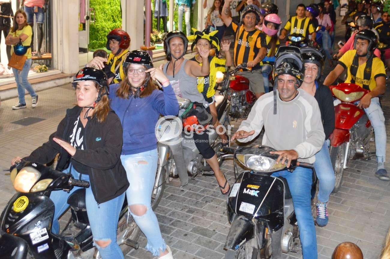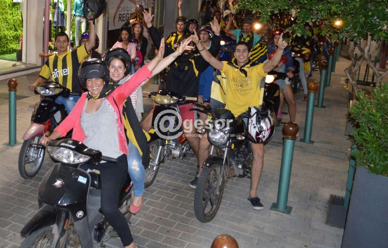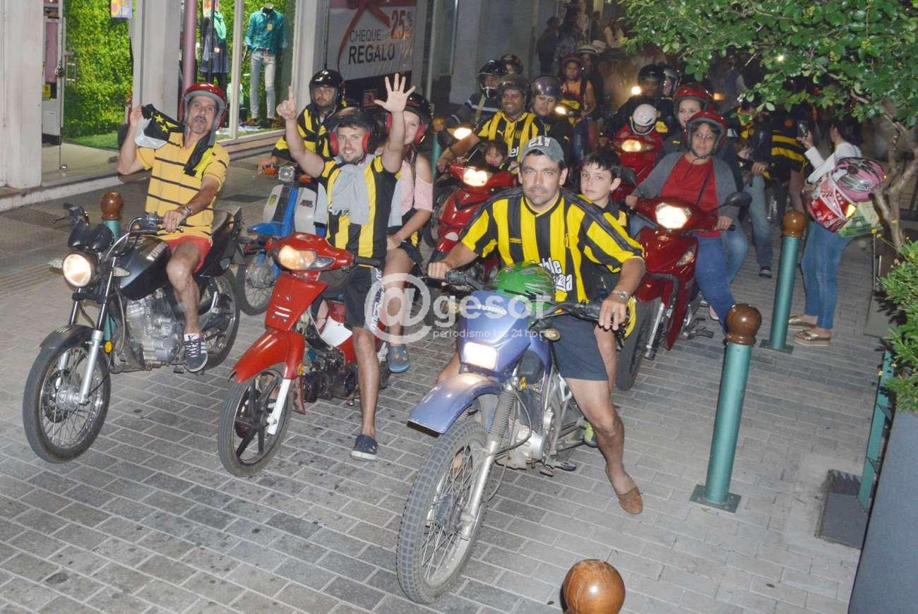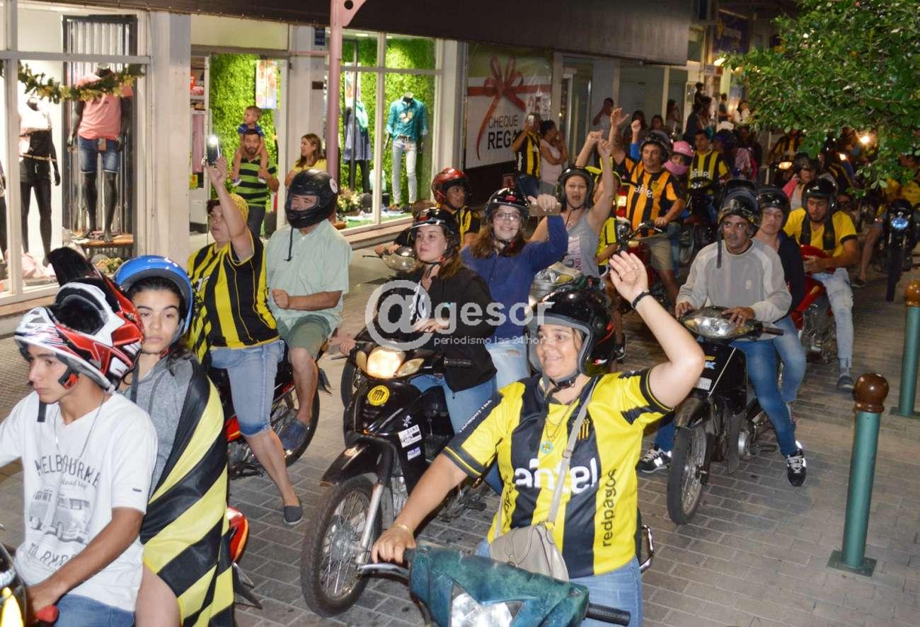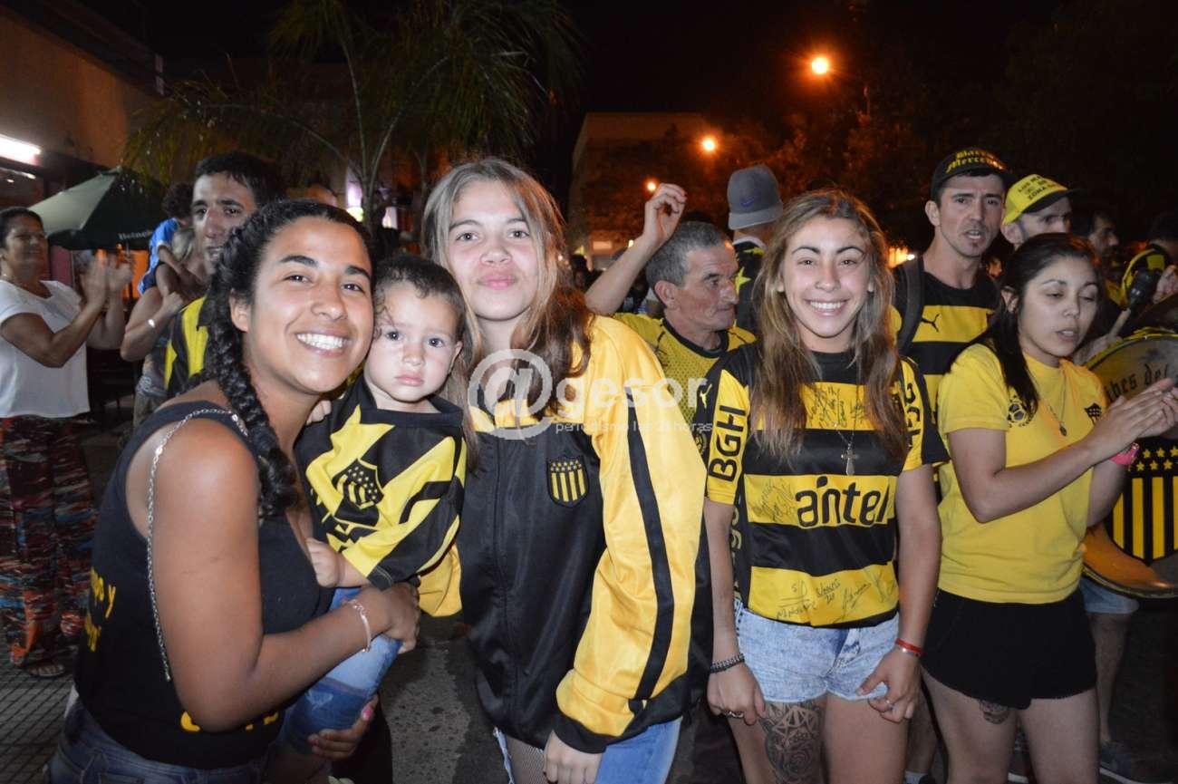La barra Mercedes que se reúne en Ferrería y Artigas, junto a hinchas que se unieron desde distintos puntos de la ciudad, caminaron por la zona céntrica rumbo a la rambla mercedaria cantando la alegría por el título.
