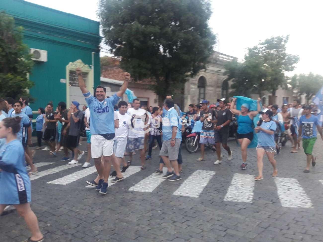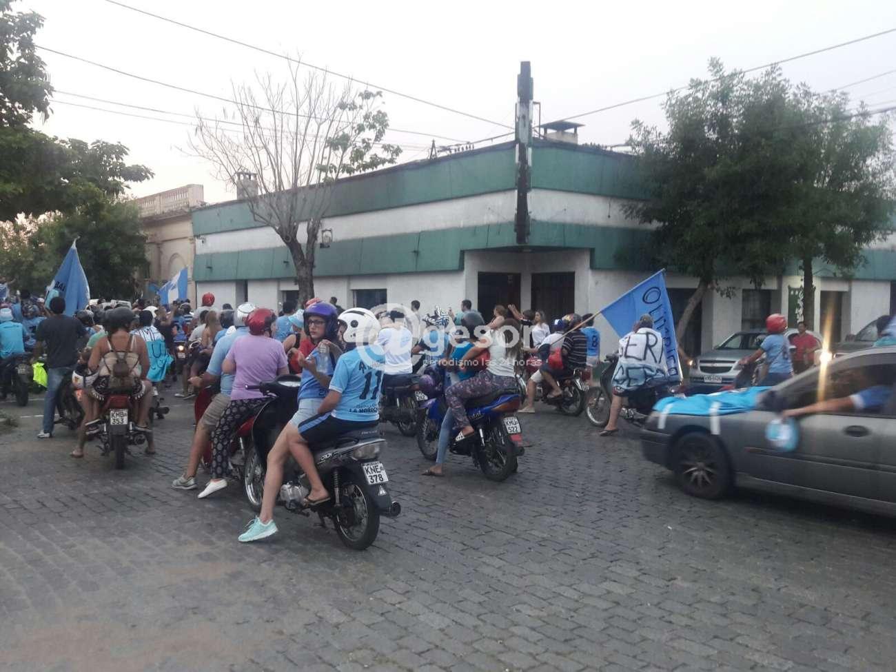 Desde todos los barrios salieron simpatizantes con camisetas y banderas festejando el título como mejor de la temporada, en el momento la caravana pasa frente a la sede del Club Asencio.