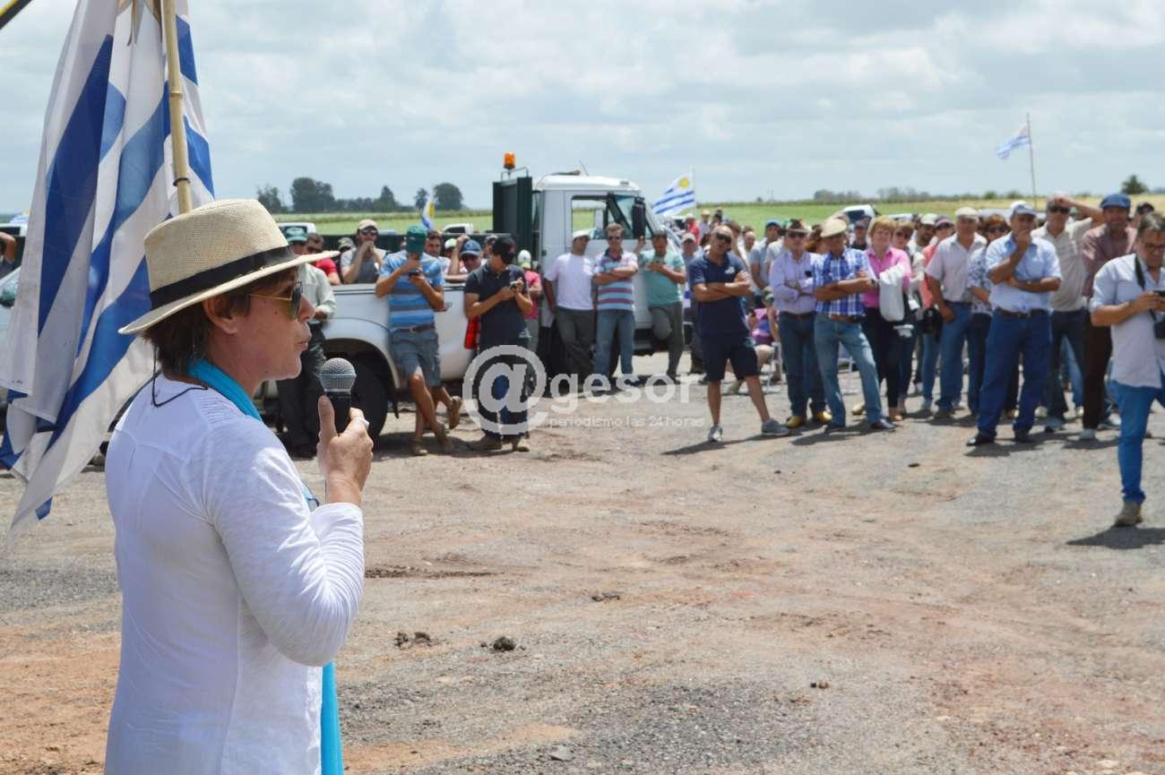 A su turno, pidió la palabra con el Pabellón Nacional en una de sus manos, Elena Lezeta, de la zona de Buena Vista (Soriano), quien señaló, "no voy a decir mucho porque todos sabemos lo que nos está pasando, por qué están acá. A la compañera (Mónica Bertoletti) que habló recié, quiero decirle que no debe tener vergüenza, los que deben de tener vergüenza son ellos, que nosotros estemos acá, todos los gobernantes, nosotros no tenemos vergüenza. Nosotros lo único que hacemos es trabajar para que ellos estén ahí, los que tenemos que decir basta somos nosotros, ellos están ahí porque nosotros los pusimos y de nosotros depende que sigan estando y que que sigan haciendo lo que nos están haciendo, porque lo único que hacemos es trabajar para ellos, cuando deberíamos estar trabajar para nosotros y nuestras familias, y el país. No para los gobernantes y toda la gente que ellos mantienen. Lo que nos está pasando ya lo sabemos todos y no voy a ser yo quien enumere de nuevo los problemas que tenemos, debemos seguir firmes como nos pusimos ahora. Para mi es una alegría y espero que para todos sea igual que nos podamos haber puesto de acuerdo de una vez por todas y esperemos que sea por mucho tiempo, en que todos estamos mal, que todos necesitamos de todos, que no tenemos que ser productores, comerciantes, almaceneros, el panadero, el del campo, el de la ciudad, este país lo hacemos entre todos y todos debemos estar juntos y que no decaiga el ánimo de ahora en más porque el camino va a ser muy largo y la lucha va a ser muy cansadora, vamos arriba, no aflojemos, esto recién empieza y la vergüenza que la tengan ellos, nosotros con la frente en alto y la bandera en alto".