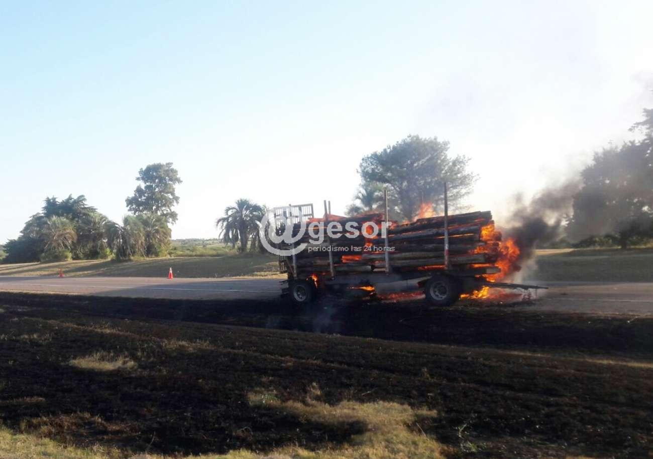 La carga de madera en rolos que transportaba un camión por Ruta 2 a la altura del km 302, tomó fuego por razones que se procuran establecer, ardiendo en su totalidad, lográndose desenganchar el tractor que tiraba de la zorra. También tomó fuego parte del predio aledaño al lugar debido a que el pasto se encuentra seco. Al lugar concurrió personal de Policía y Policía Nacional de Tránsito, ya que mientras ardía la carga, debió cortarse del tráfico vehicular que luego fue reanudado.