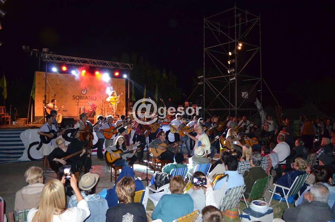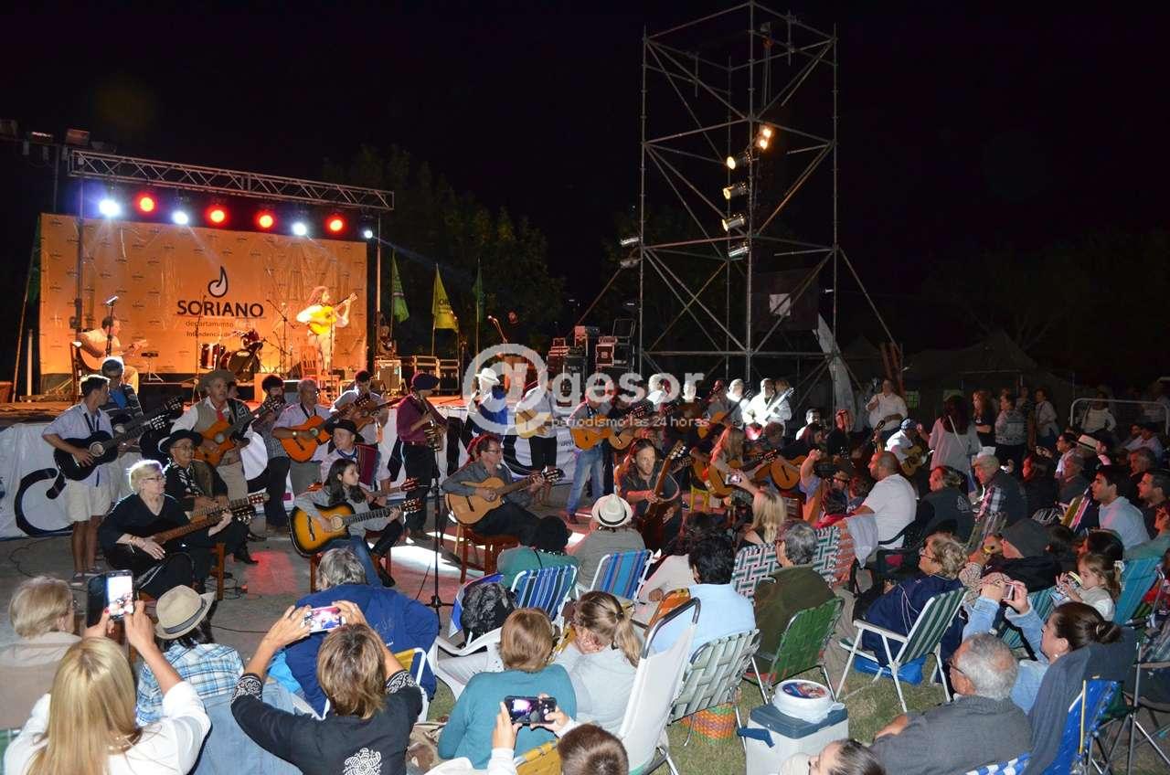 (@gesor en Villa Soriano) Cerca de 60 guitarras sonaron al unísono para cantar ‘A Don José’ en la milonga más grande del mundo. Como adelantáramos el desafío lanzado por Osvaldo Lagos prendió, primero en las redes sociales y después en el compromiso de numerosos guitarristas, profesionales y aficionados, que llegaron a Villa Soriano con su instrumento para tocar “A Don José”. Con el marco del 16° Festival Grito de Asencio la oportunidad fue propicia para concretarlo. Debajo del escenario los guitarristas se formaron y tocaron. Algunos con sus guitarras amplificadas por micrófonos, la mayoría sin amplificar pero con el mismo entusiasmo de participar del desafío. Algo que seguramente quedará en el recuerdo y la emoción de todos los que participaron, como músicos o como público, que terminó cantando la popular canción a viva voz.