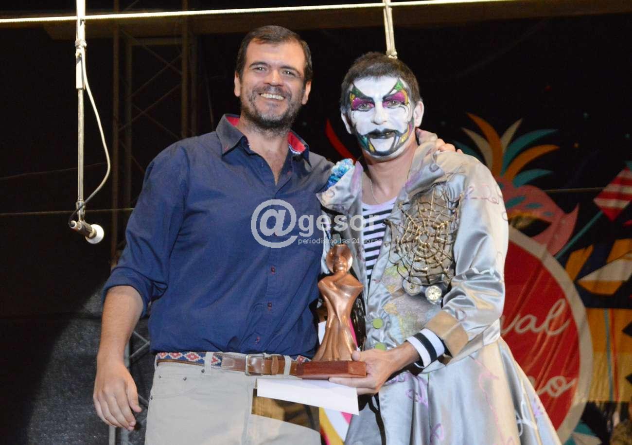 9- El Marqués de las Cabriolas, Mario Barrios entrega diploma a la trayectoria para Miguel Nieto de Los Saltimbanquis, lo recibe en su nombre, Alejandro Bueno