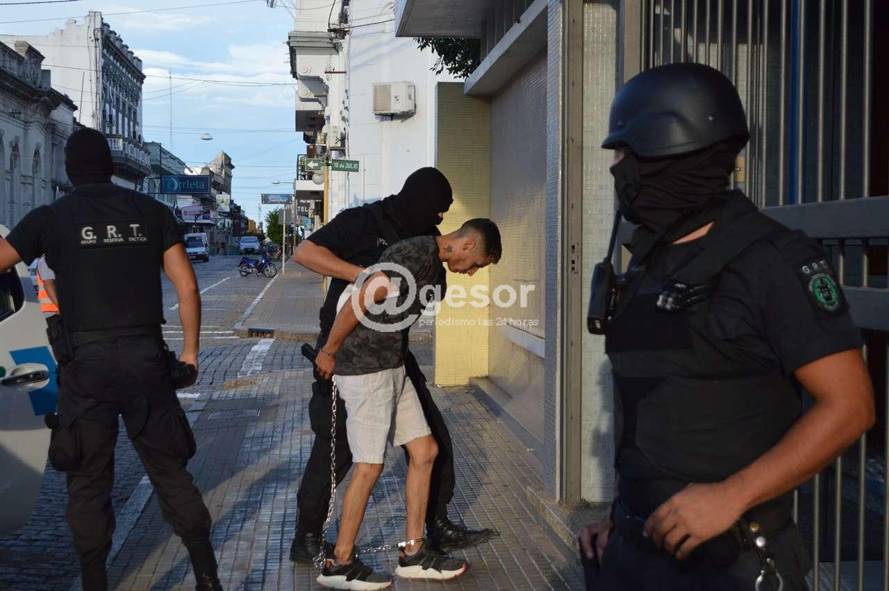 Cabe recordar, como lo informamos por separado que uno de los detenidos, Richard Sebastián Aranda Faller el de la foto de portada (en momentos en que llegaba a Fiscalía a declarar) de esta noticia estaba requerido desde hace un año por el robo de Mundo Mágico en Dolores y también desde Colonia y Florida por delitos similares, donde deberá responder posteriormente. En las fotografías también el momento de salir de la.Fiscalía de otro de los delincuentes y la llegada del otro de los delincuentes heridos, tras ser curado en el Hospital Mercedes e ingresado en seccional 1a. para luego ser trasladado a Fiscalía. Ampliaremos ya que la actividad va a ser larga en esta jornada de sábado y posiblemente pueda continuar el domingo.