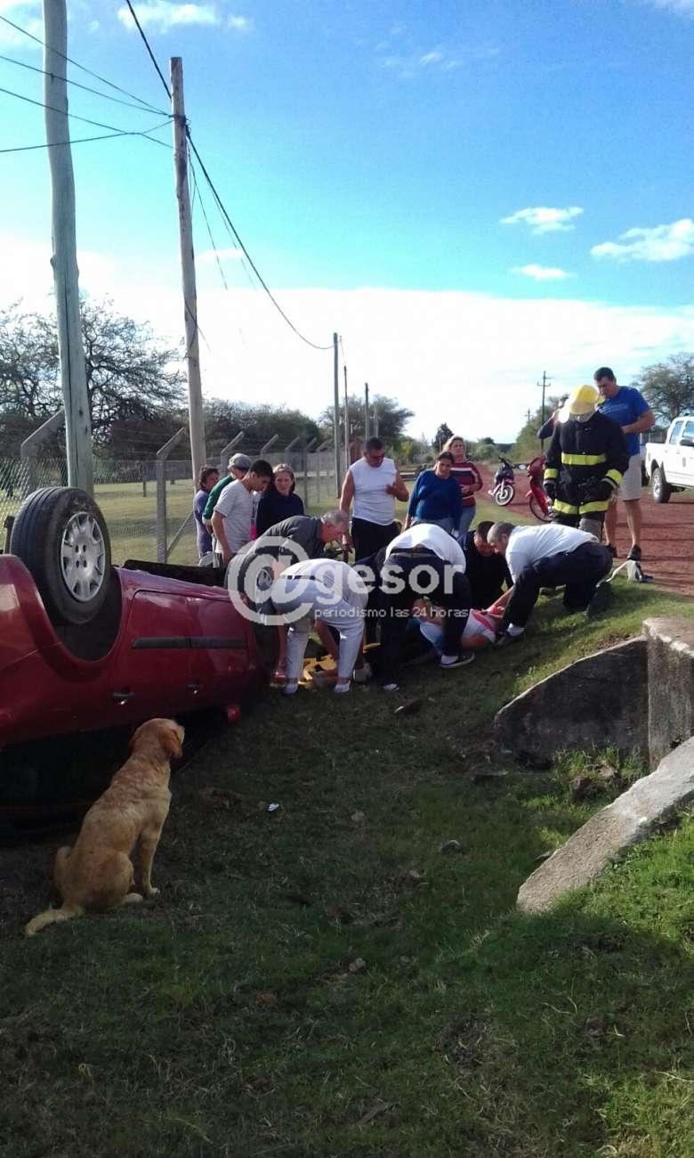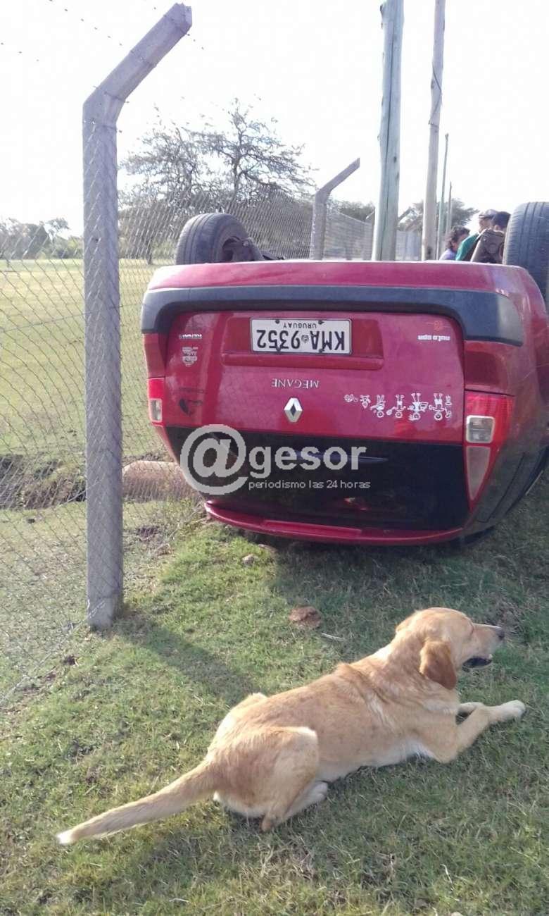 El vuelco de Renault Megane KMA 9352, ocurrió en la tarde de este viernes , en la zona conocida del predio de la antena de radio de los colegas de Radio Agraciada.
