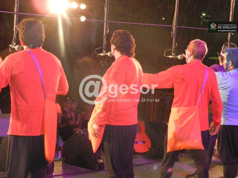 Debajo del escenario  los integrantes de Jardín del Pueblo, de Salto, la murga que subiría a continuación, ya maquillados, se lamentaban de este imponderable que les impedía actuar.