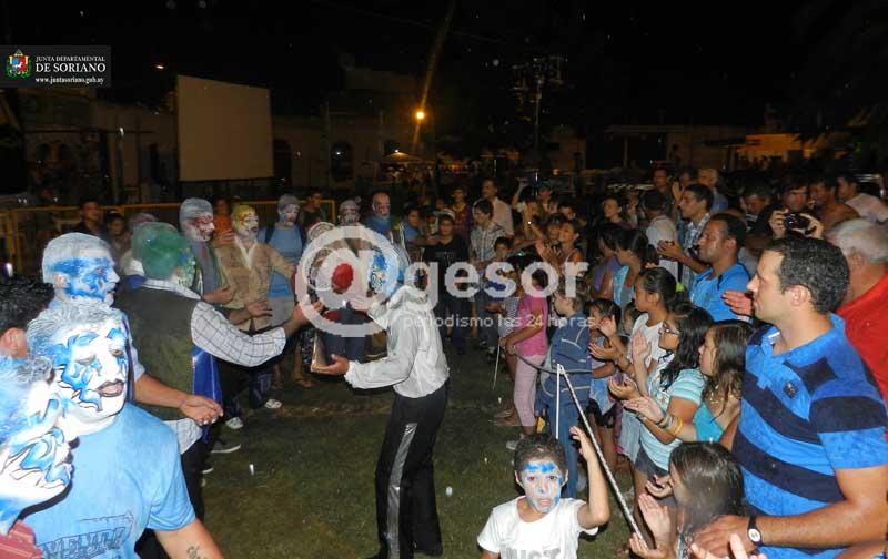 La lluvia caía y el público no quería irse. Los murguistas con las caras pintadas esperaban para actuar, pero el agua frustró la fiesta. Igualmente La Celeste cantó para el público, a viva voz y sobre el césped, como una suerte de homenaje a quienes resistieron la inclemencia del tiempo.