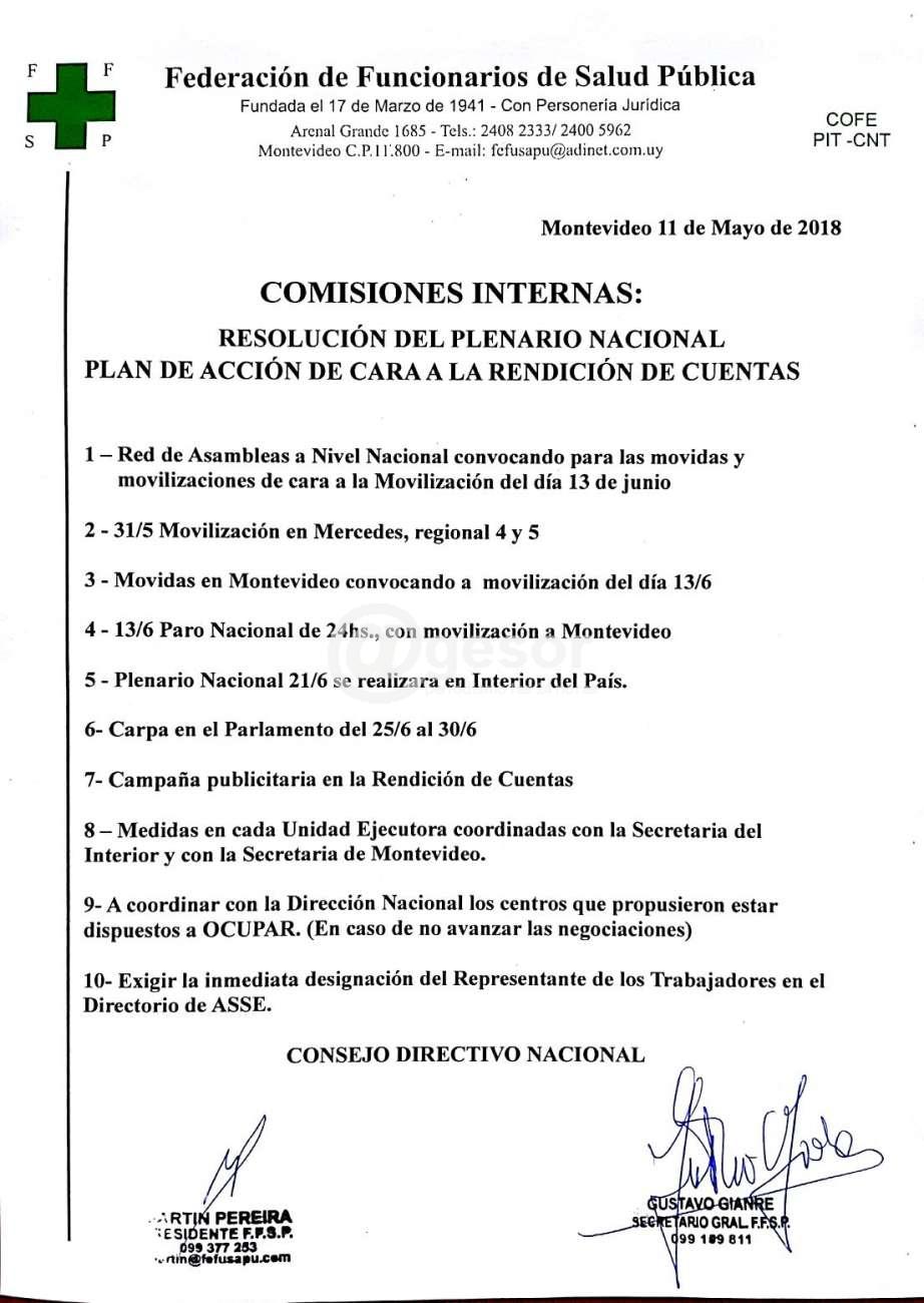 En ese sentido el Plenario Nacional de la Federación Funcionarios, dio a conocer un plan de acción de cara a la rendición de cuentas que adjuntamos.