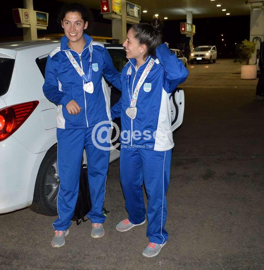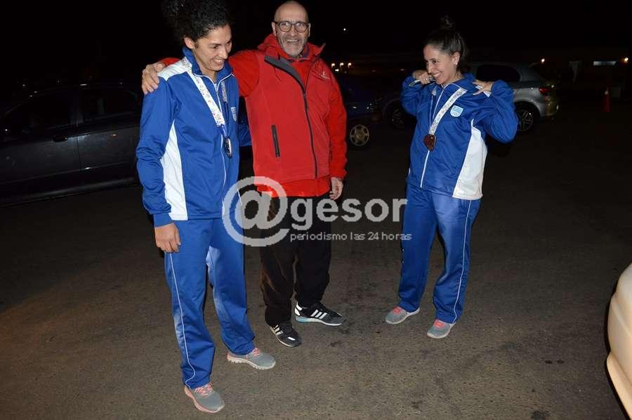 Las jóvenes pelotaris mercedarias, Mariángel Maneiro y Sofía Vicente arribaron en la noche de este sábado a Mercedes, donde las aguardaba un sorpresivo recibimiento.
