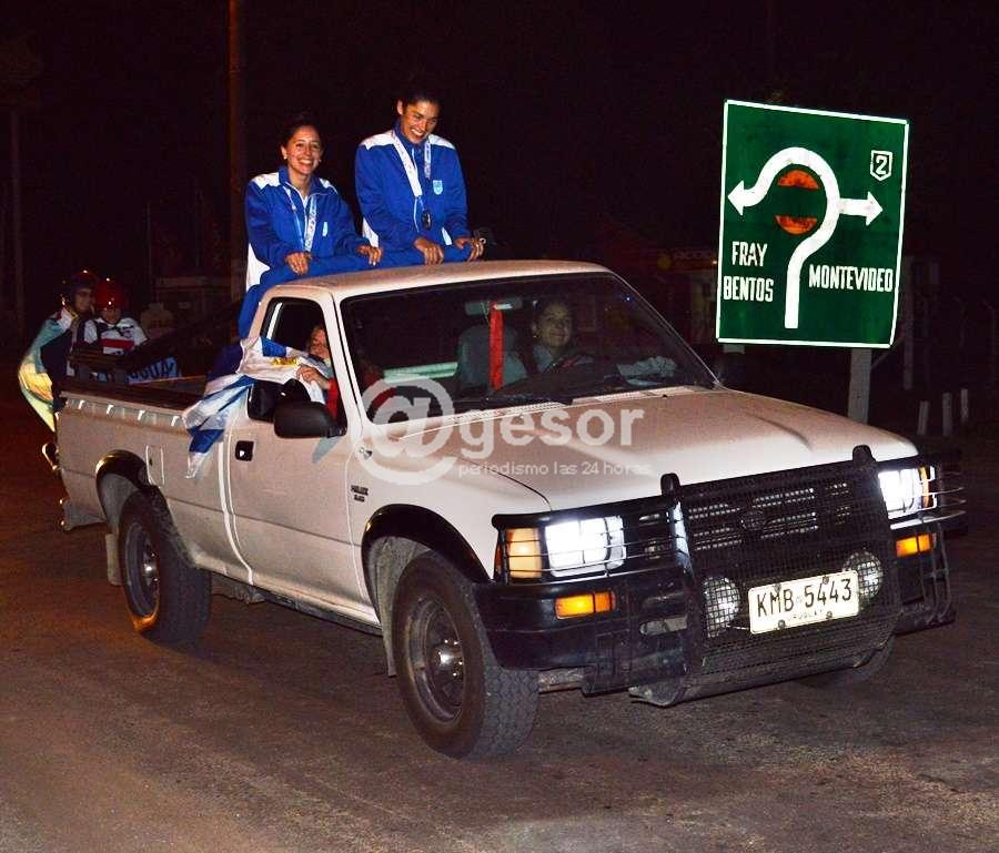 Allí en el ingreso a la ciudad se inició una bulliciosa carava una que recorrió calles de la ciudad para finalizar en Centro Pelotaris donde también la aguardaba un importante número de personas para tributarle un merecido reconocimiento.