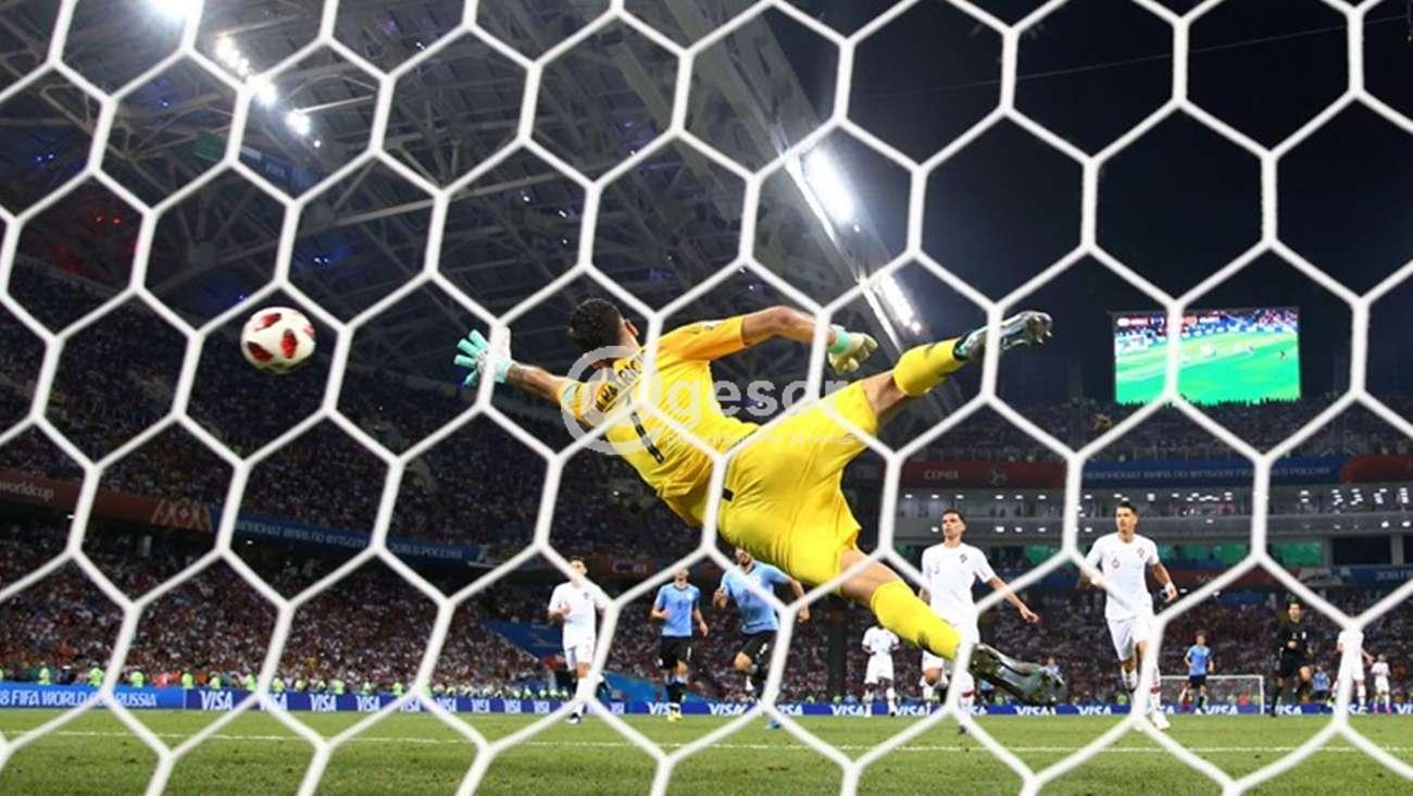 En un encuentro cuyo trámite se marcó por el tempranero golazo de Cavani en una jugada que inició él, con un pelotazo cambiando de derecha a izquierda todo el ancho de la cancha para Luis Suárez y éste tras el control y encarar a un rival pone el centro pase para Cavani que mitad cara y mitad hombro la metió junto al caño izquierdo de Rui Patricio para poner el 1 a 0, iban solamente 7 minutos.