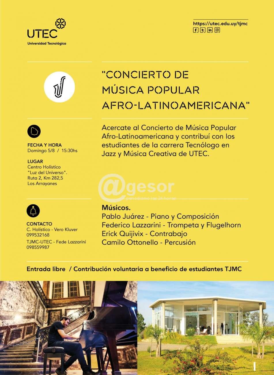 La actividad finalizará con un concierto de cierre a cargo de Juárez y docentes de la carrera de Tecnólogo en Jazz y Música creativa que dicta la UTEC en Mercedes.